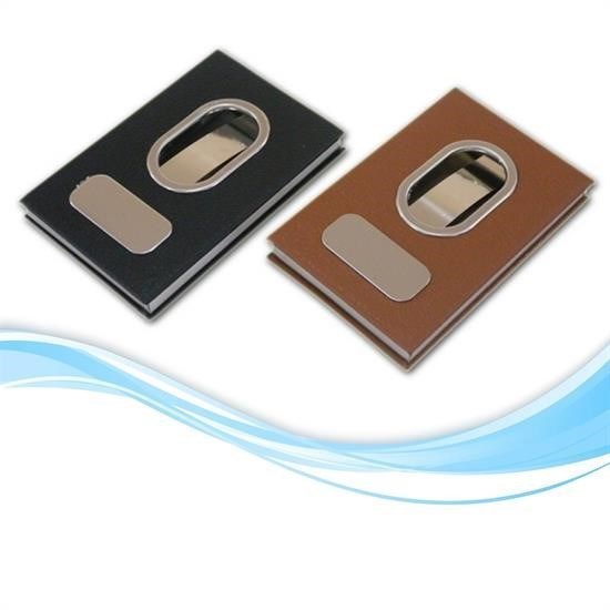 Deri Mekanizmalı Kartlık Cüzdanı, krom kaplama kasası üzerine yapılan suni deri kaplama ile şık bir görünüşe sahiptir