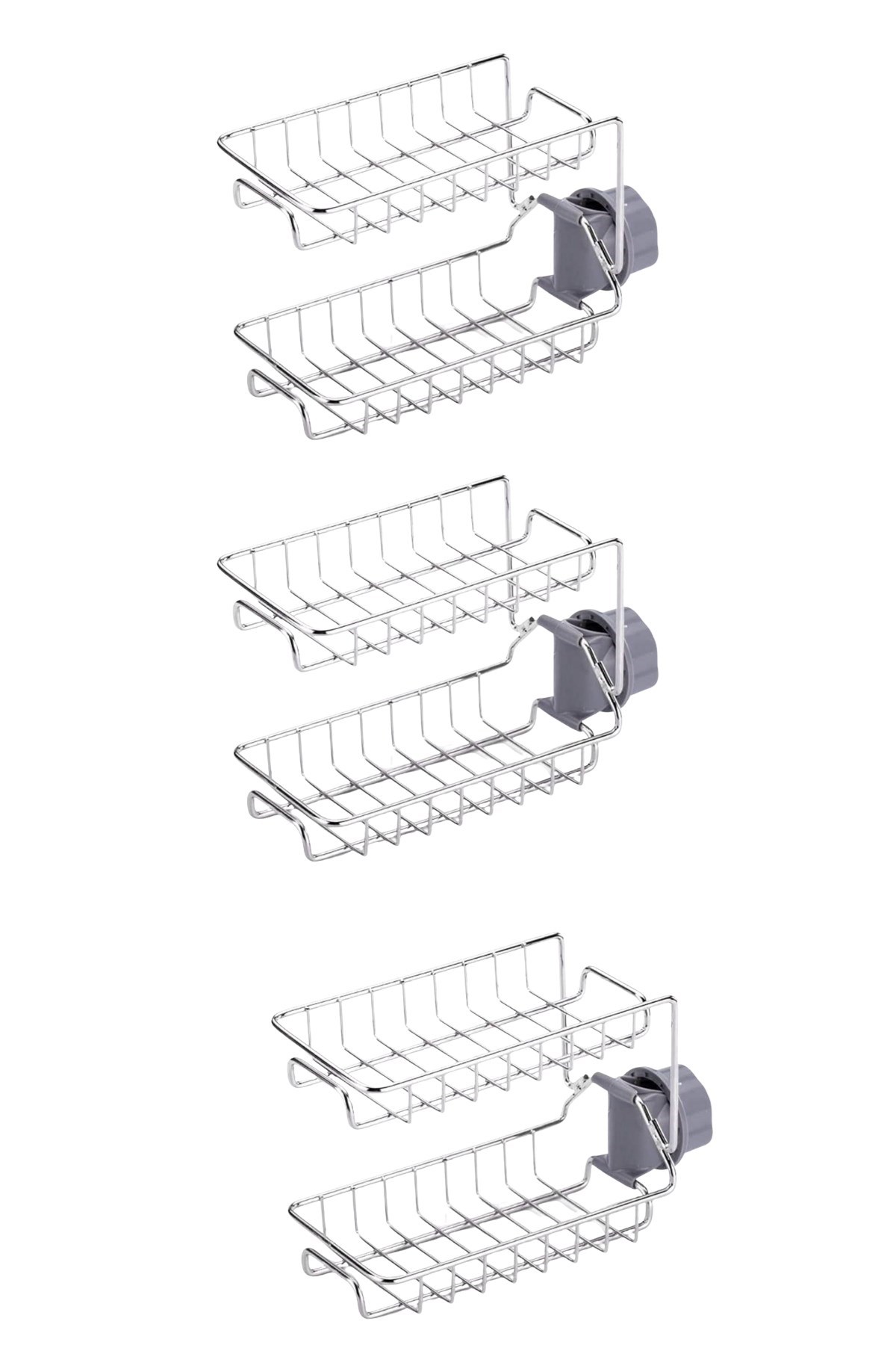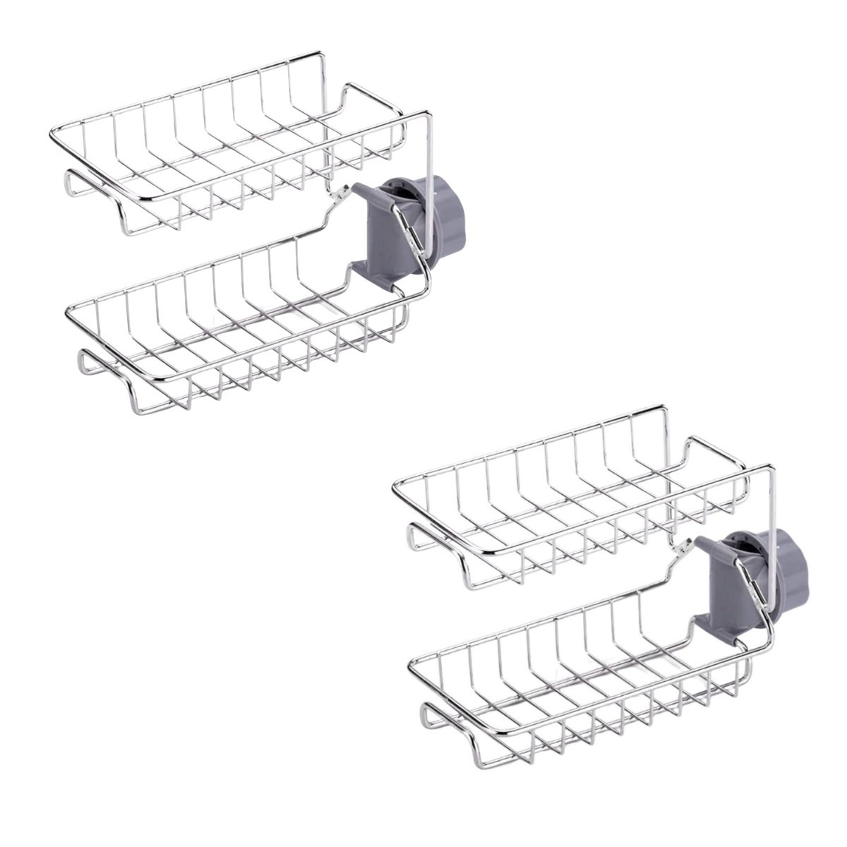 1 adet x Paslanmaz Çelik İki Katlı Mutfak ve Banyo Organizer Musluk Sabunluk Şampuanlık Rafı