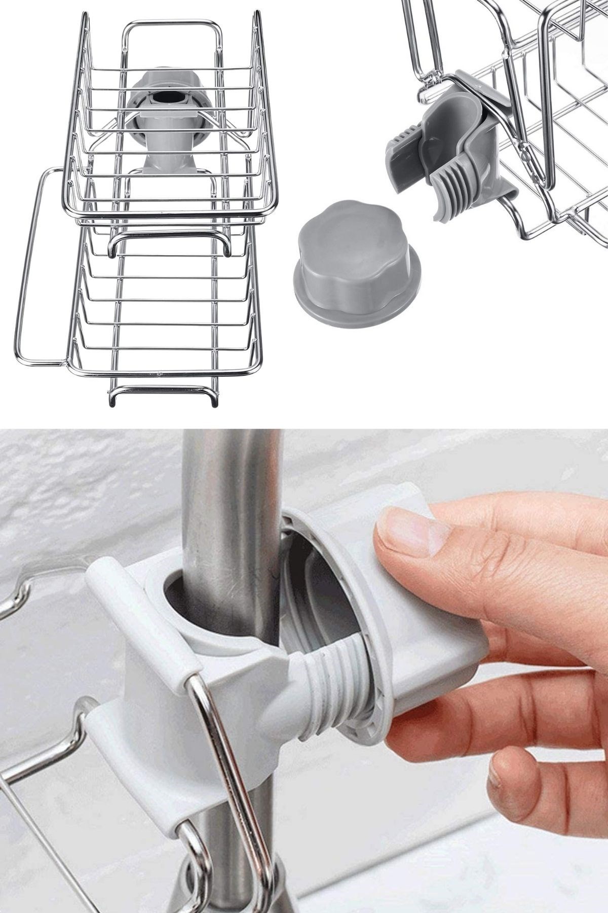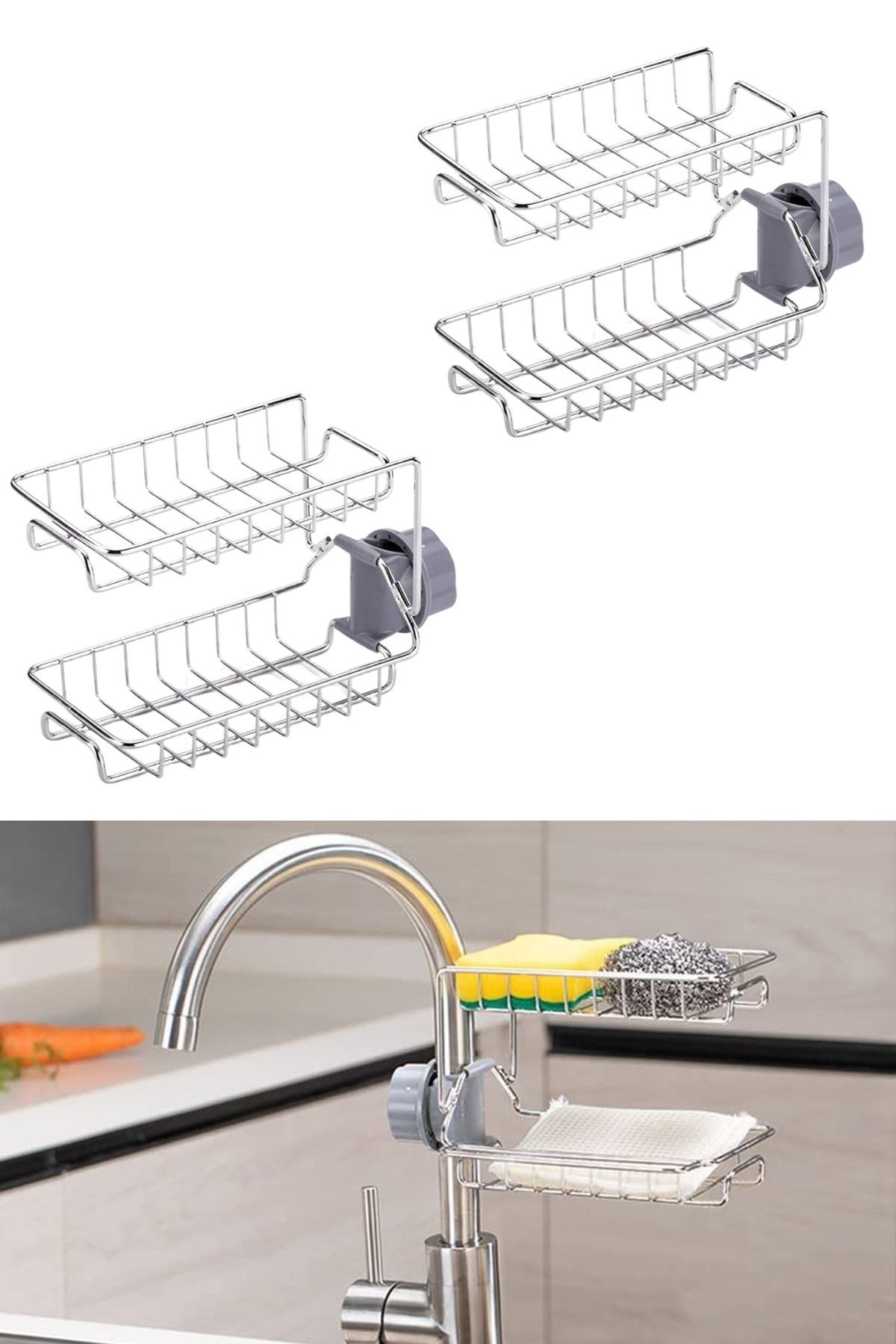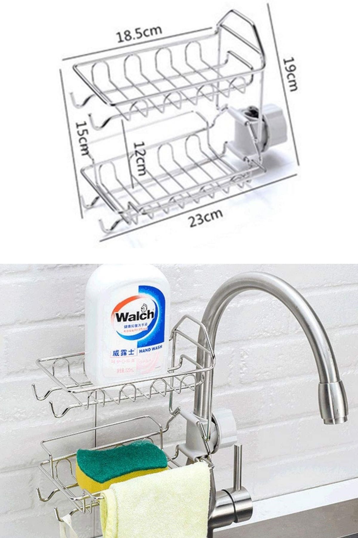 Bu musluk saklama rafı, mutfağınızda veya banyo musluğunuzda küçük eşyaları saklamak, eşyaları kuru tutmak için mükemmeldir