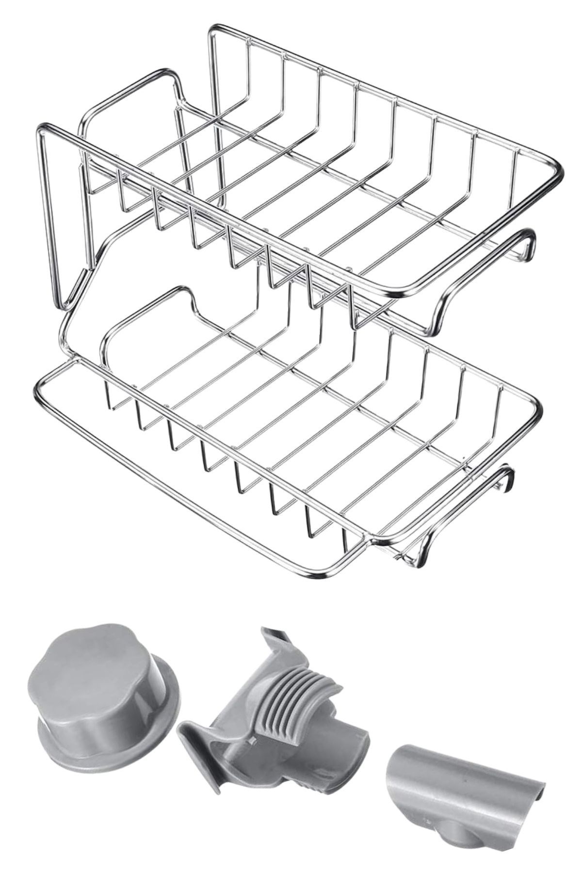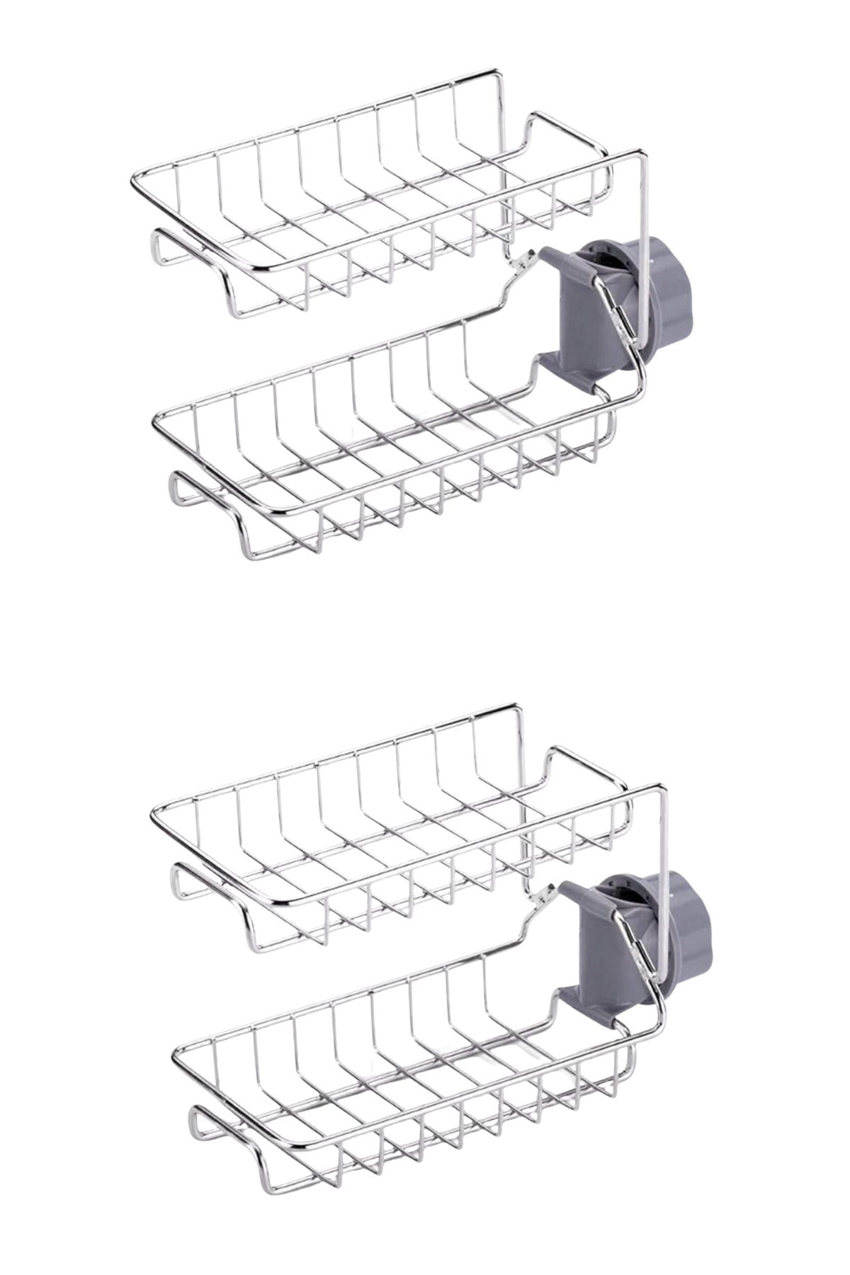Buffer Paslanmaz Çelik İki Katlı Mutfak ve Banyo Organizer Musluk Sabunluk Şampuanlık Rafı