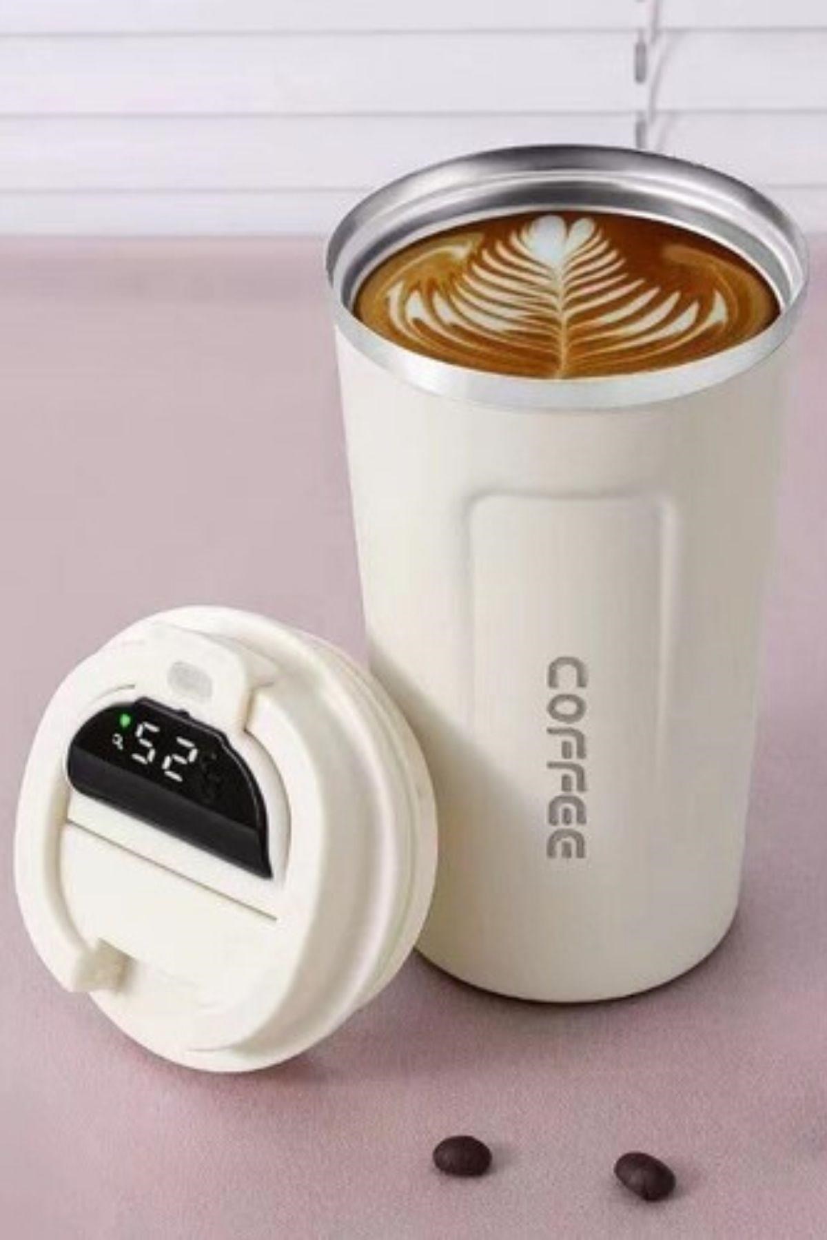 BUFFER® Paslanmaz Çelik Isı Yalıtımlı Akıtmaz Kapak Tasarımlı Isı Ölçerli Dijital Ekranlı Kahve ve Çay Termosu