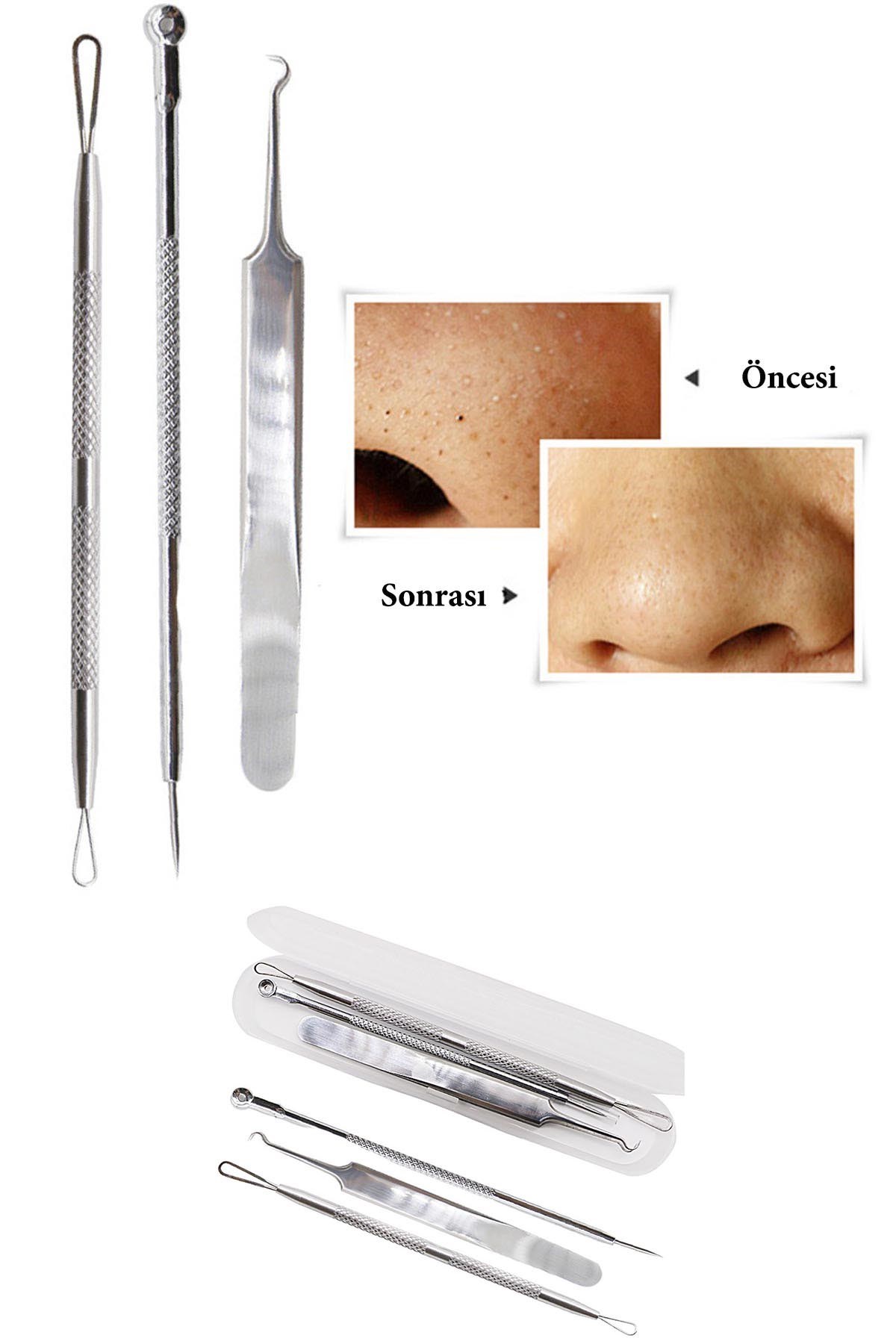 Paslanmaz Çelik Siyah Nokta Sivilce ve Akne Temizleyici Set 3'lü Kit
