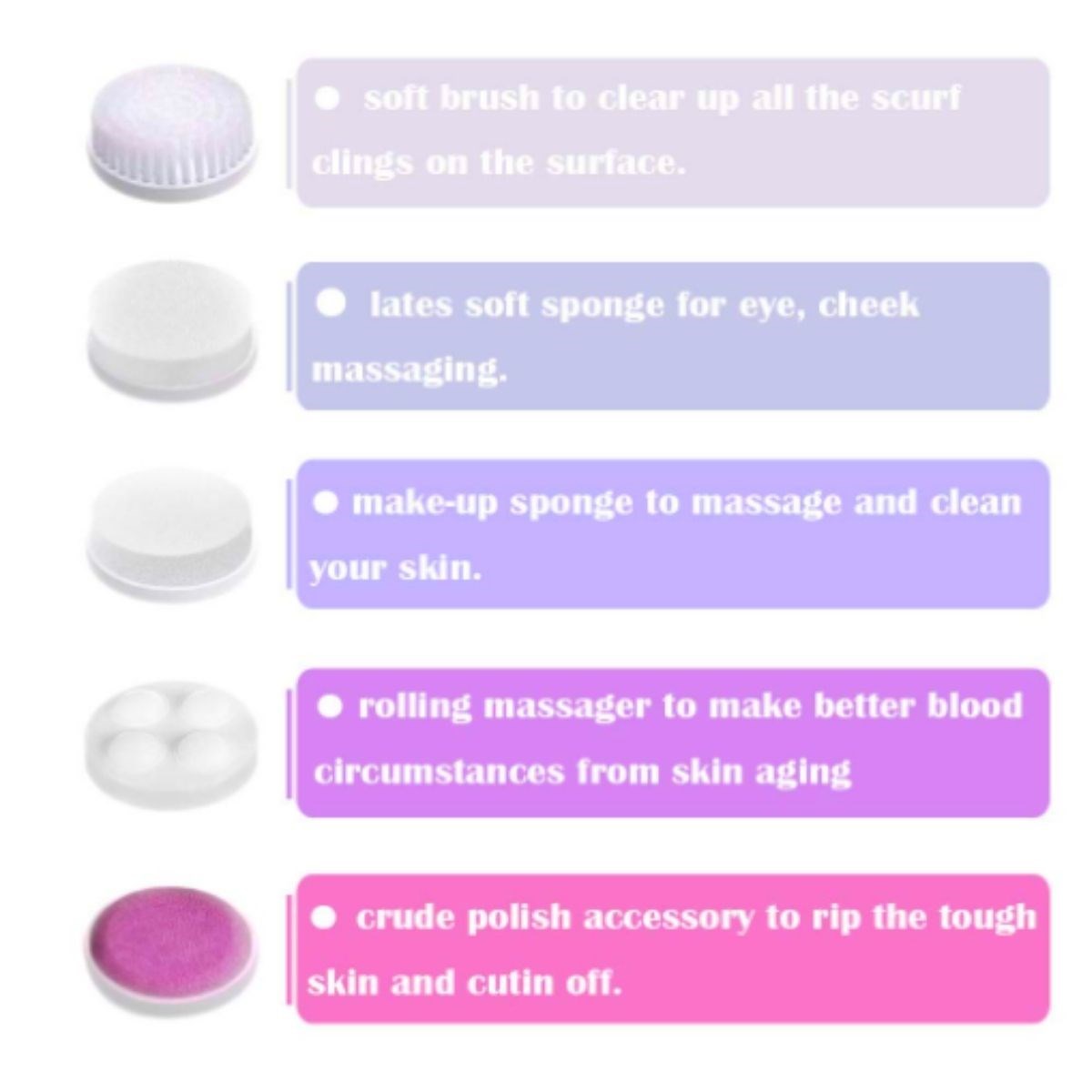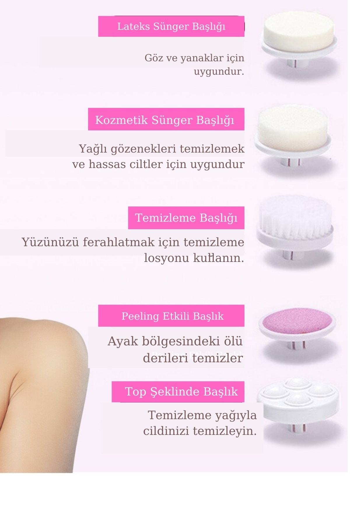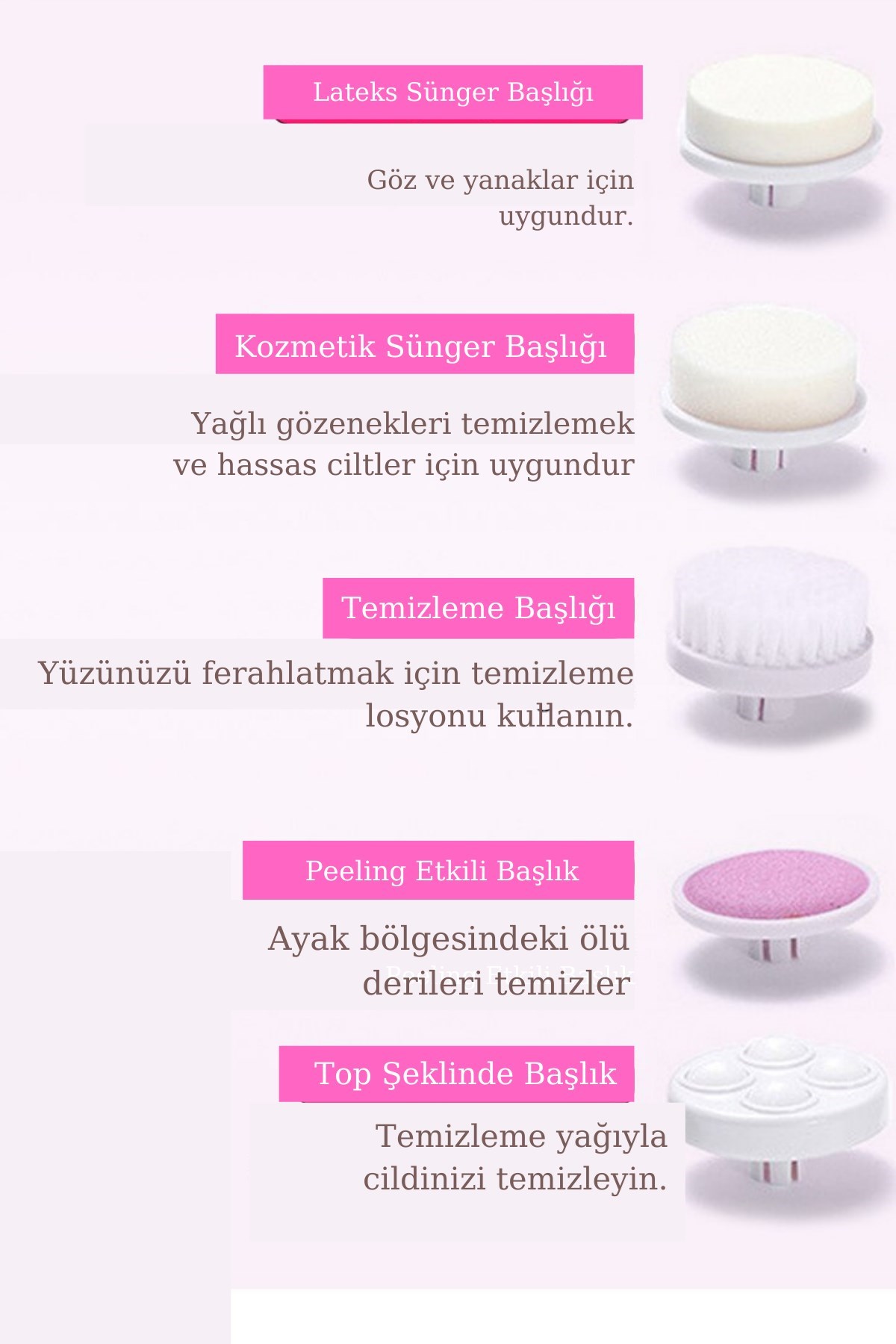 5 başlık fırçası yüzünüzün ve cildinizin durumuna göre değiştirilebilir başlıklardan oluşur