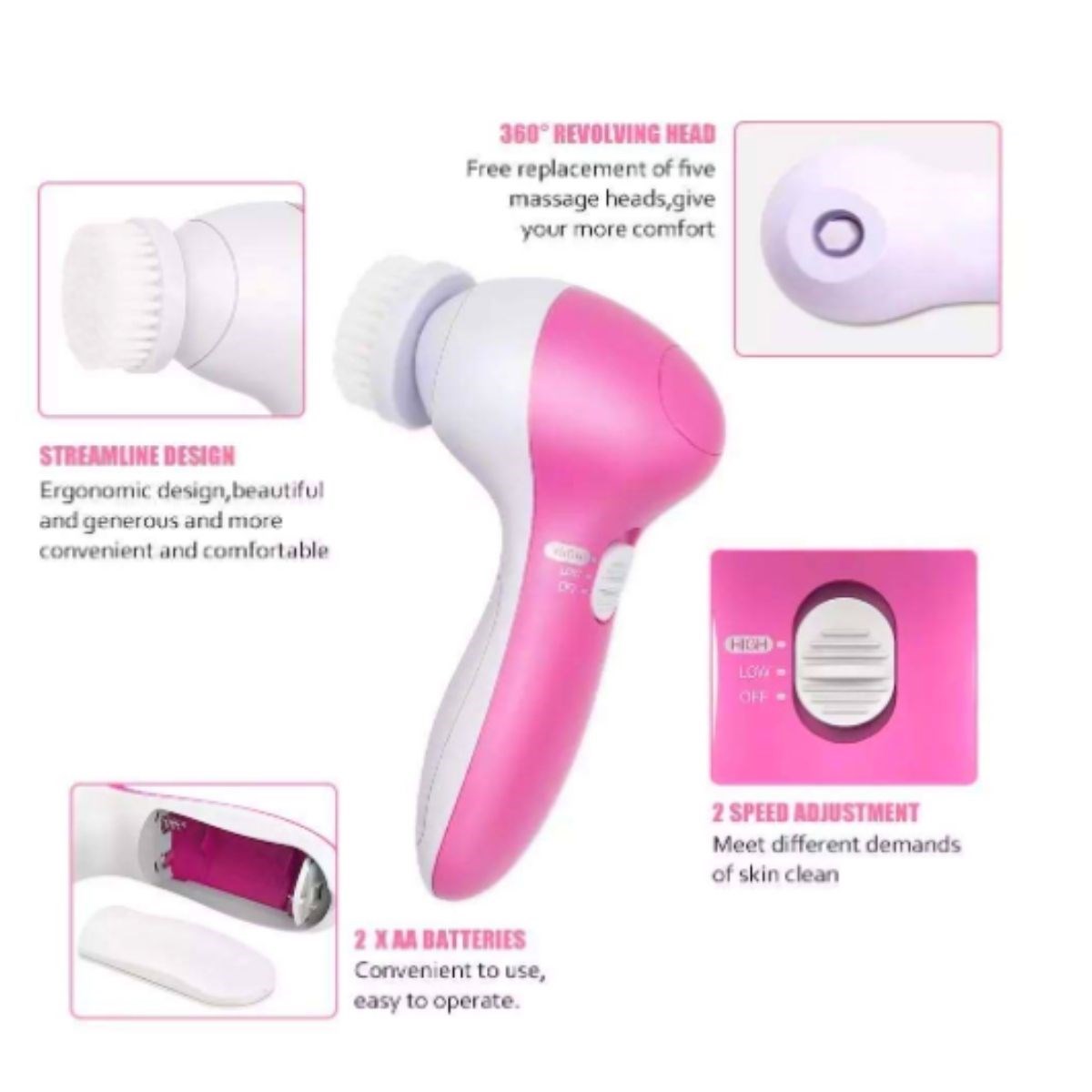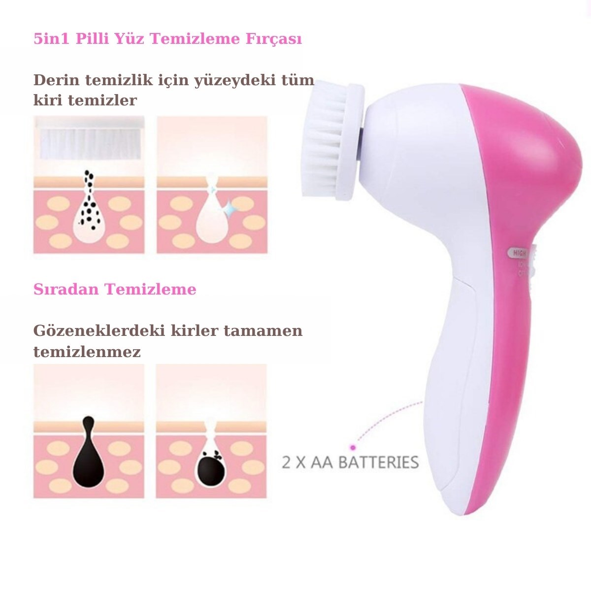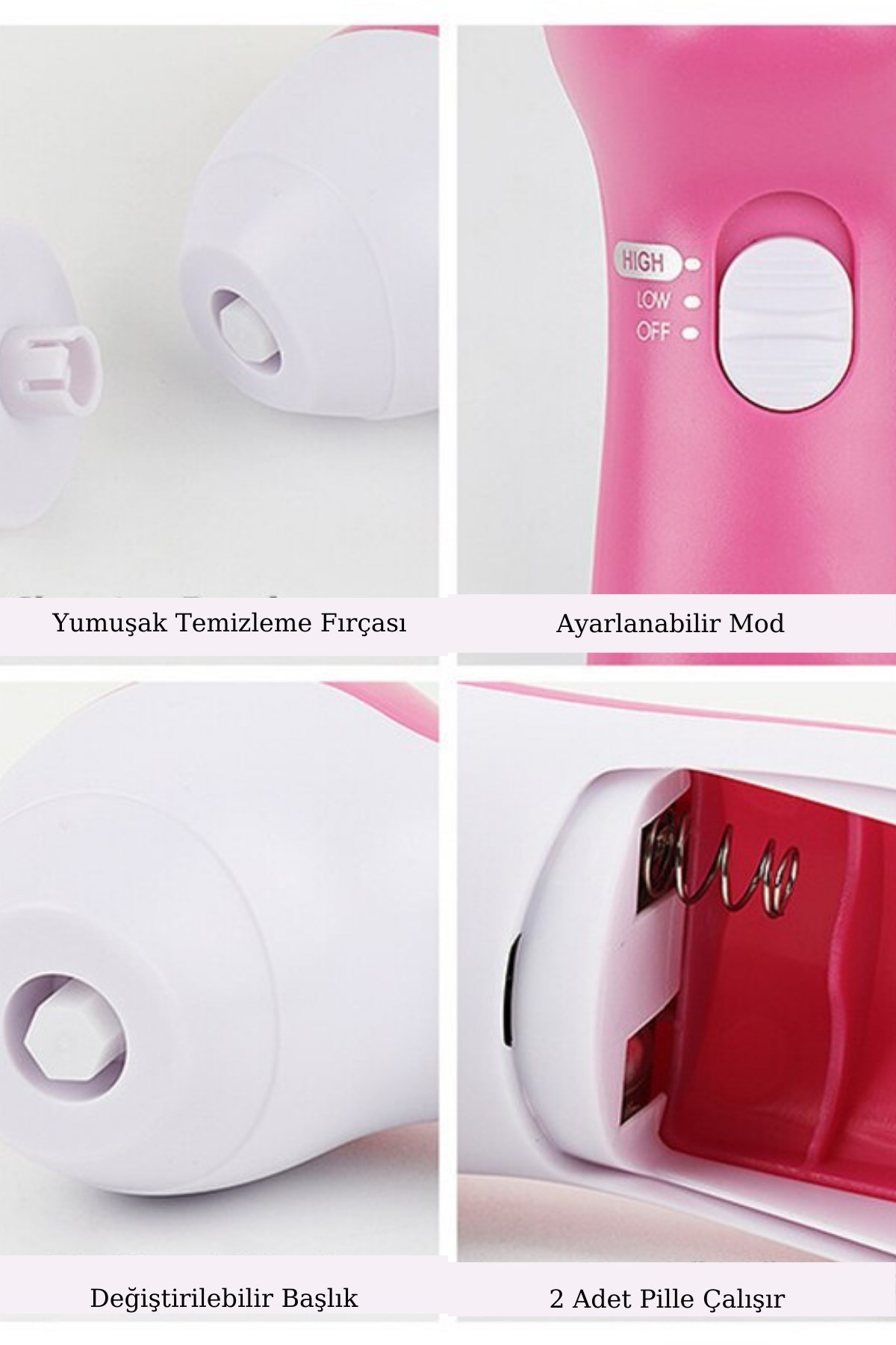 5 başlık fırçası yüzünüzün ve cildinizin durumuna göre değiştirilebilir başlıklardan oluşur