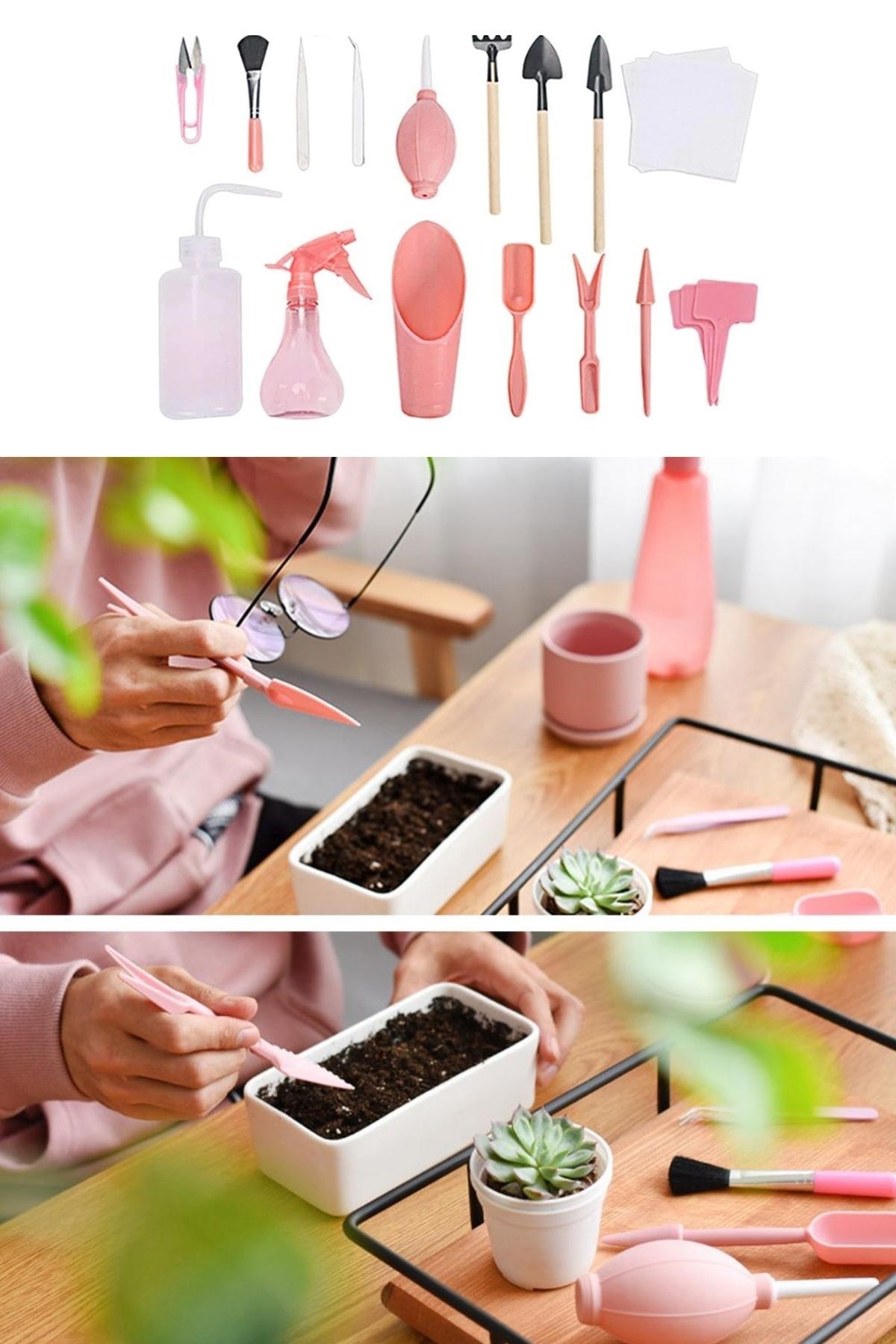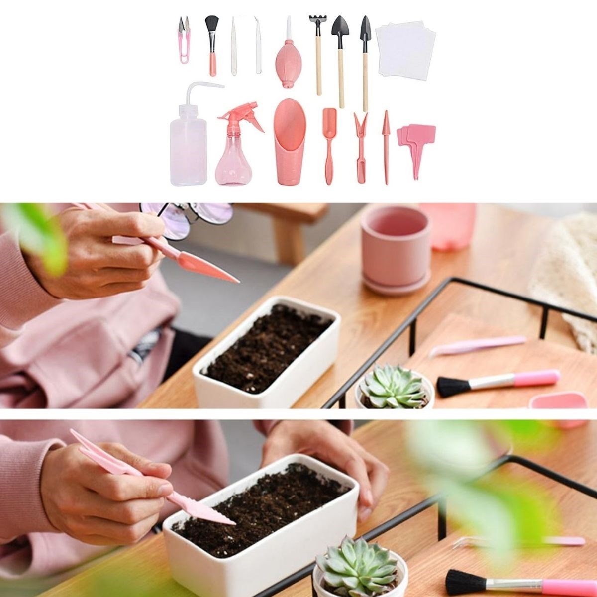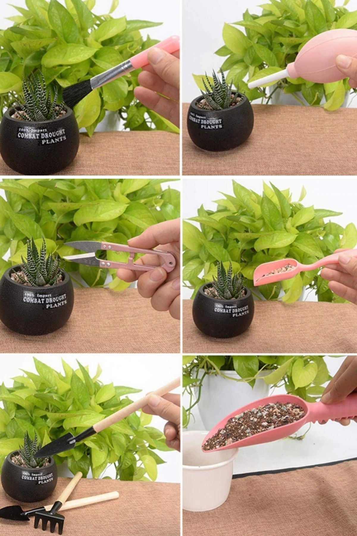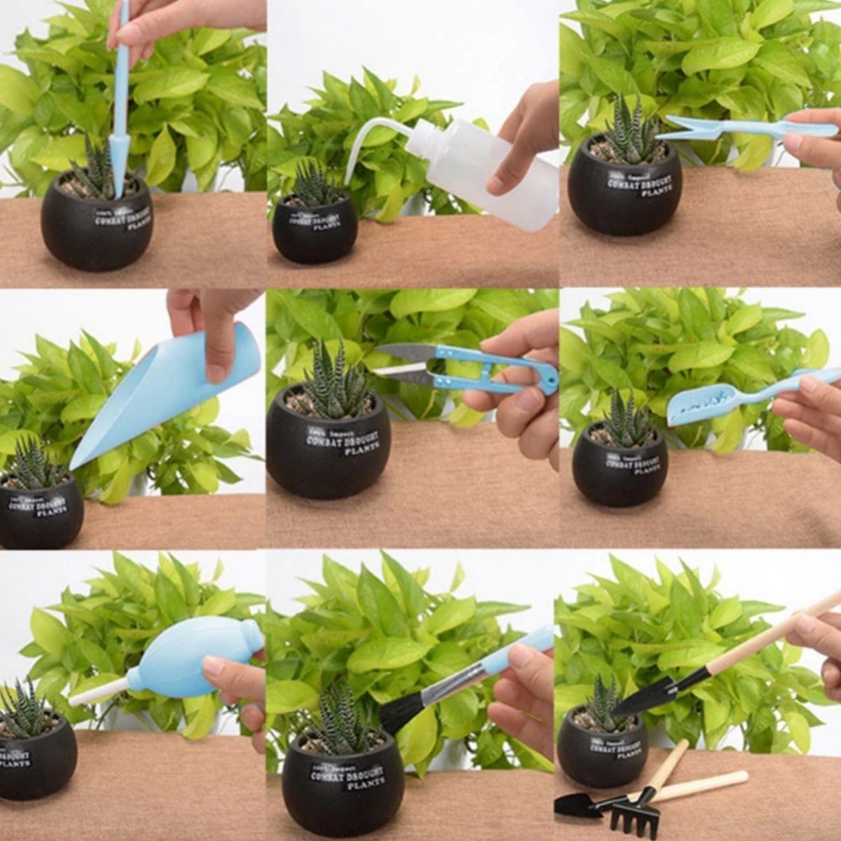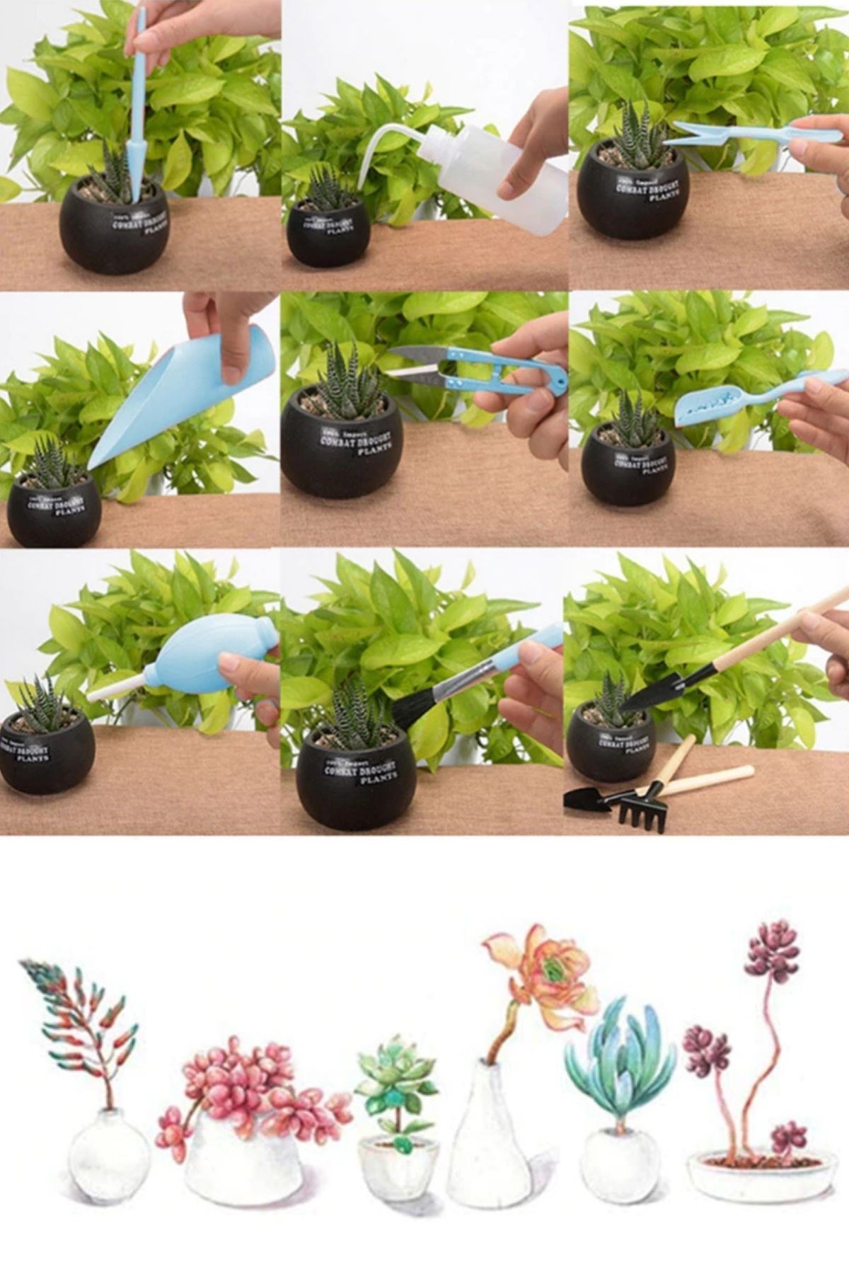 Kazma, toprağı gevşetme, ekme, sulama, budama vbbir çok özelliği bünyesinde barındıran Buffer® 16 Parça Minyatür bahçe aletleri seti Bitki Ekim ve Bakım Seti , sukulent bonsai,orkide,süs bitkileri ve küçük bitkiler için idealdir
