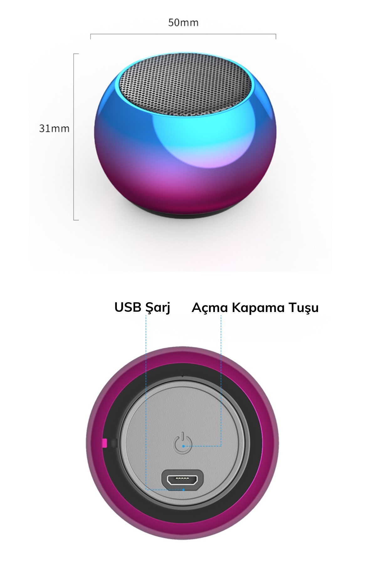 Buffer Taşınabilir Portatif USB Şarjlı Wireless Speaker Bluetooth Hoparlör Mini Ses Bombası Topu