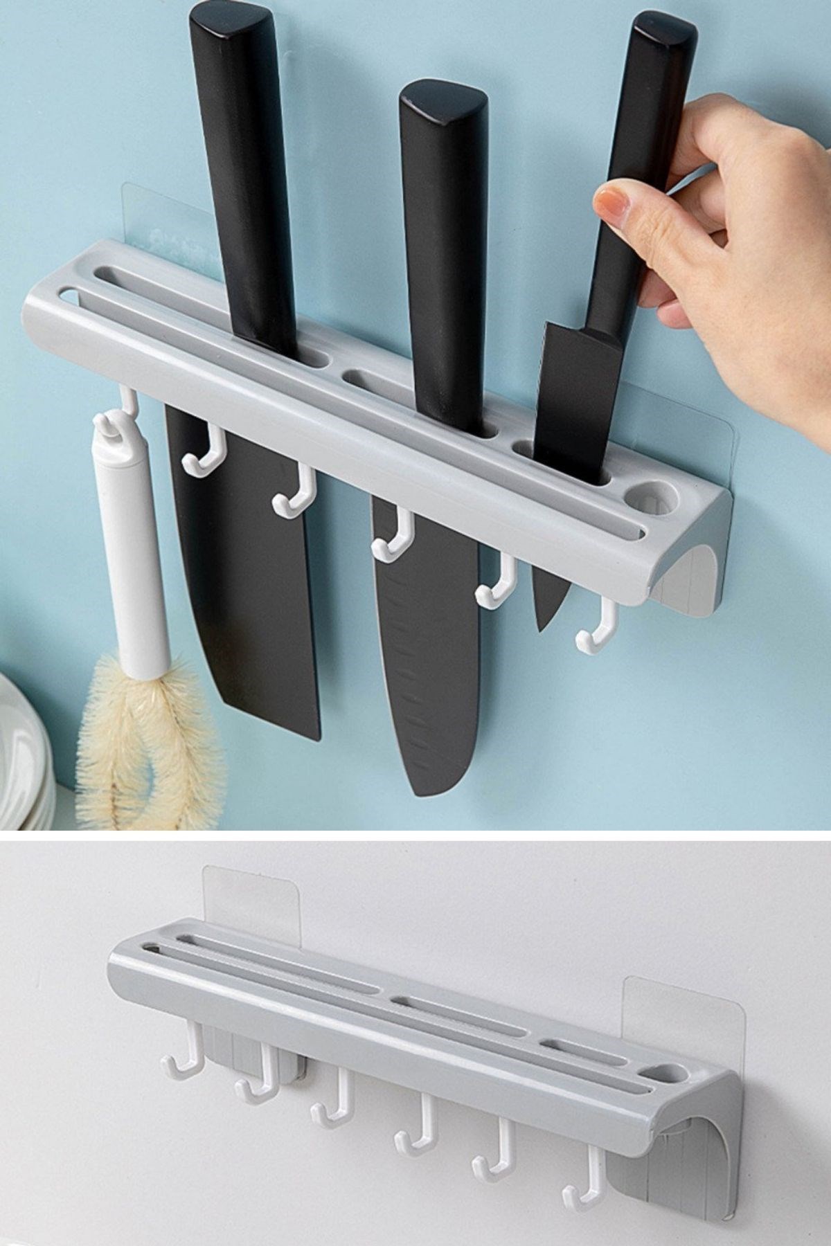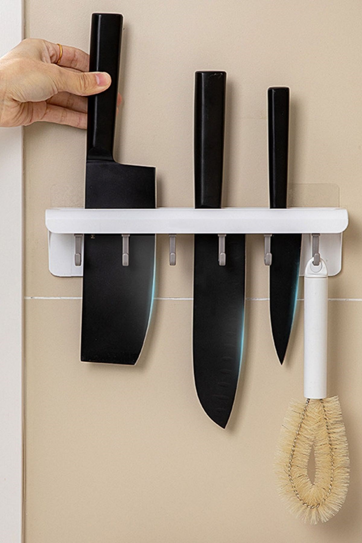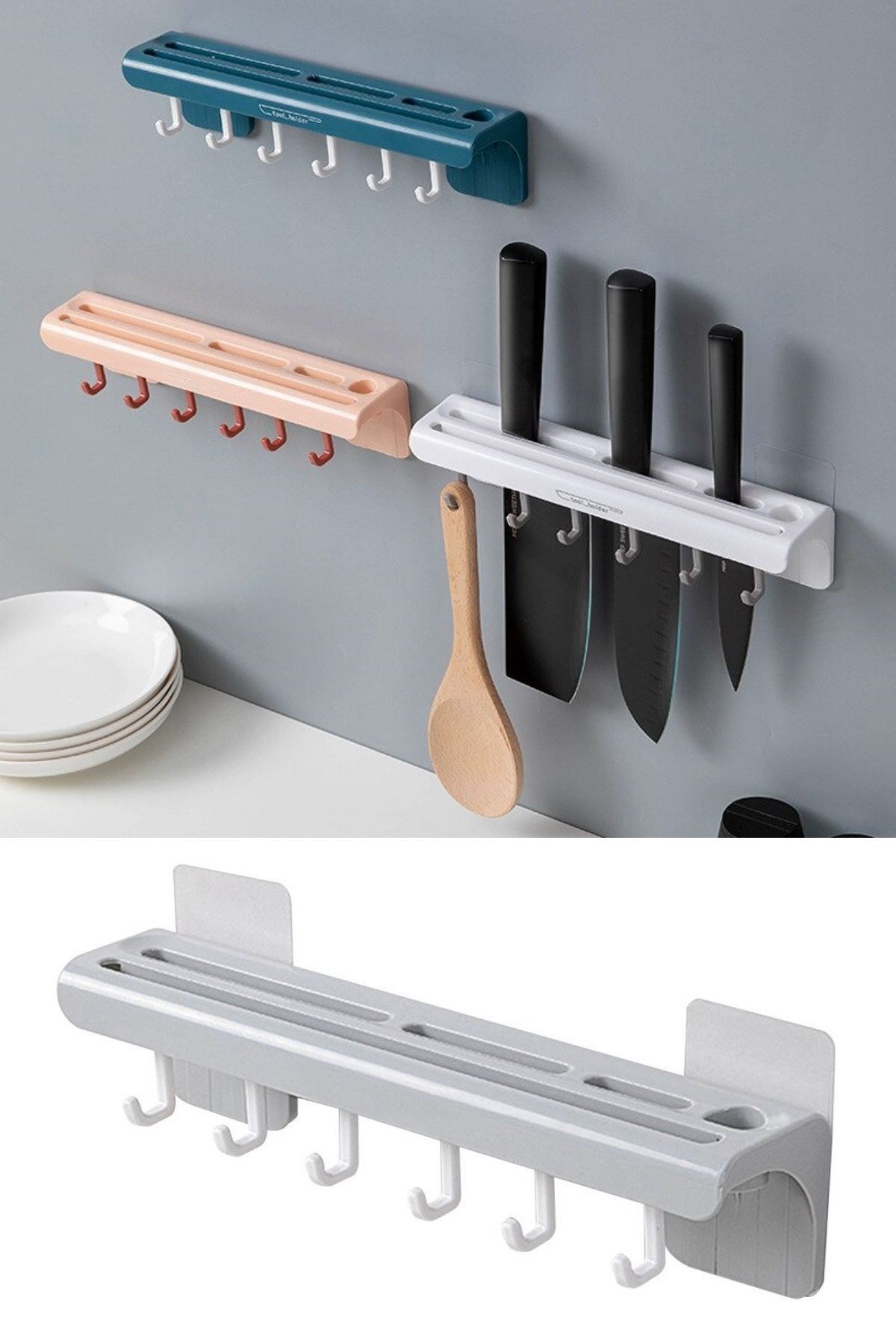 Kullanışlı tasarım: Pratik plastik bıçak askısı, mutfak dolaplarında veya duvarda kullanım için uygun tasarlanmıştır. Ayrıca askı, çekmece veya dolap içinde de kullanılabilir, böylece mutfakta yer sorunu yaşamadan bıçaklarınızı düzenli bir şekilde saklayabilirsiniz.