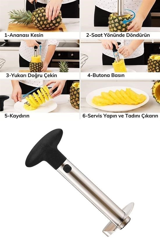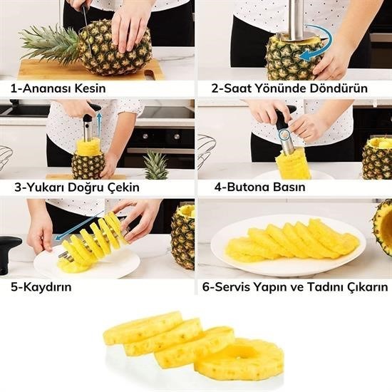 BUFFER® Pratik Ekstra Keskin Bıçaklı Ananas Meyve Kesme Dilimleme Aleti Doğrayıcı Mutfak Aleti