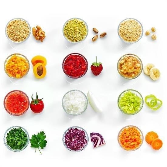 Sebze Meyve Kuruyemiş Kesme Doğrama Rondosunun sahip olduğu paslanmaz üçlü lazer bıçaklar, gıdalarınızı rahatlıkla kesmenizi ve doğramanızı sağlar