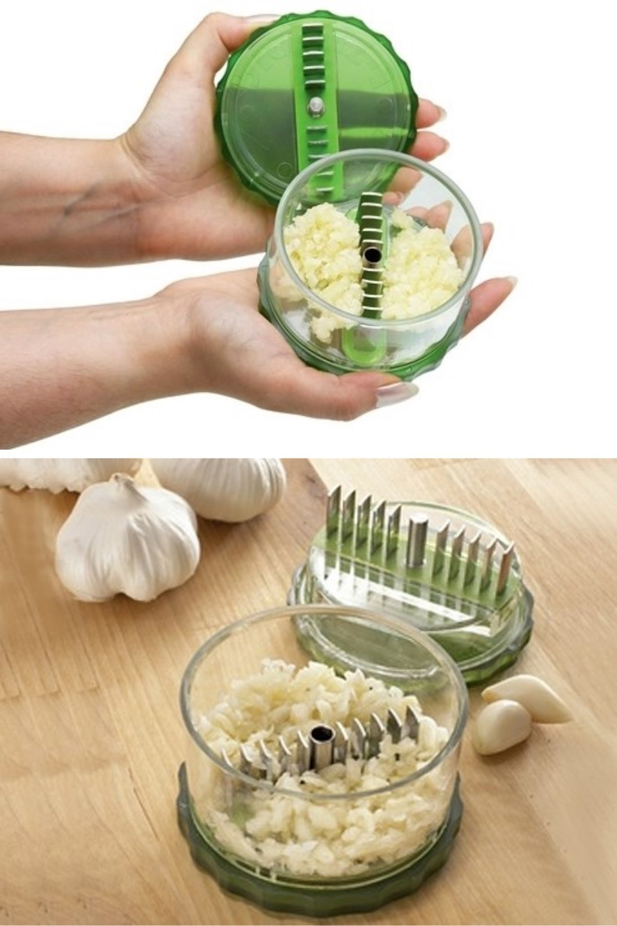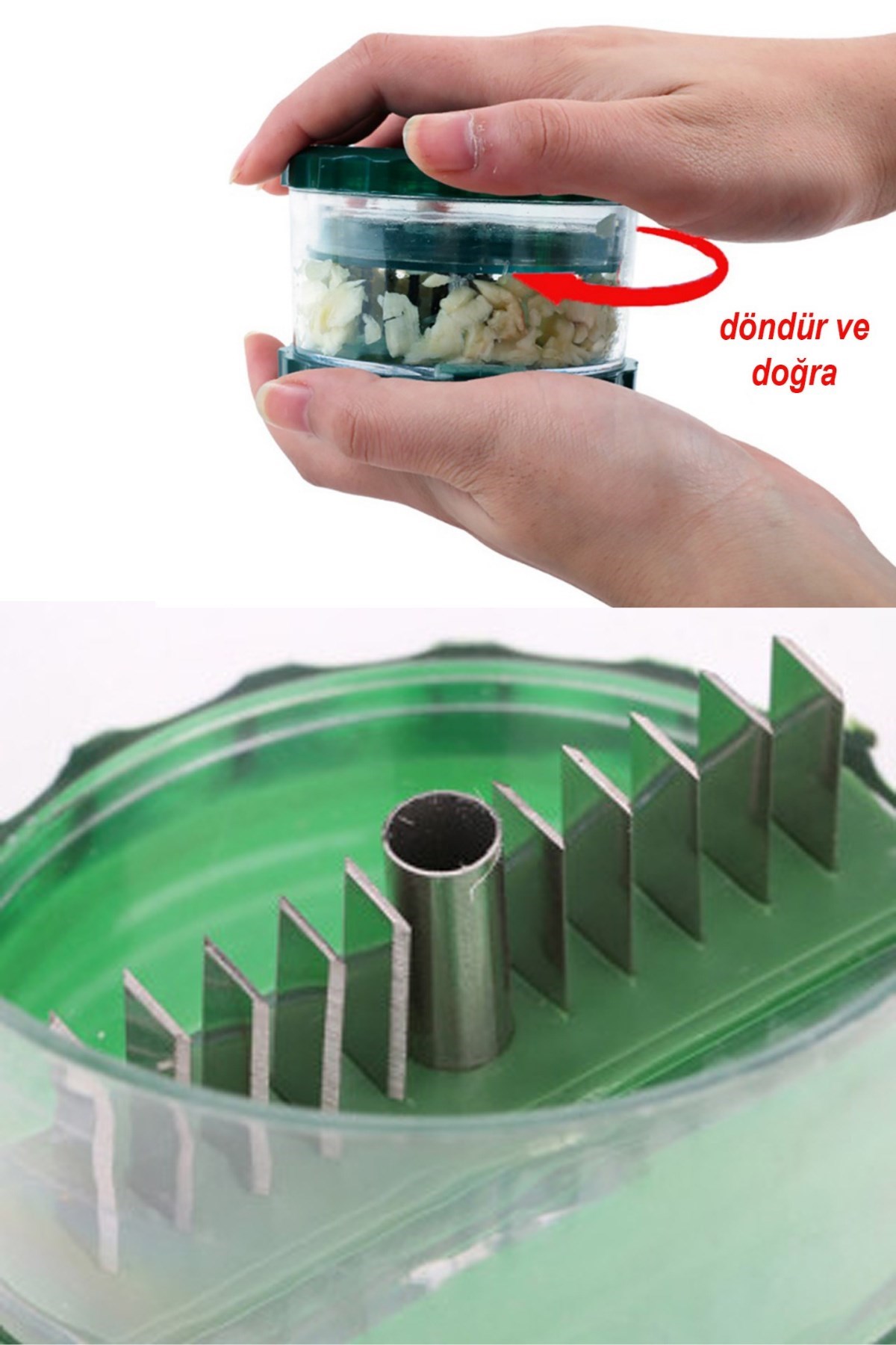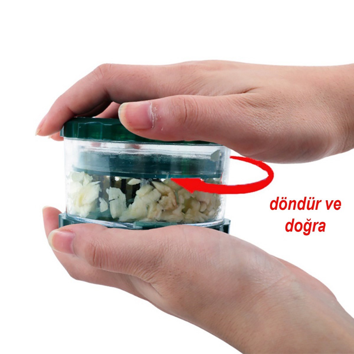 • Doğramak için doğrayıcı kaba sarımsakları yerleştirmeniz ve çevirmeniz yeterli