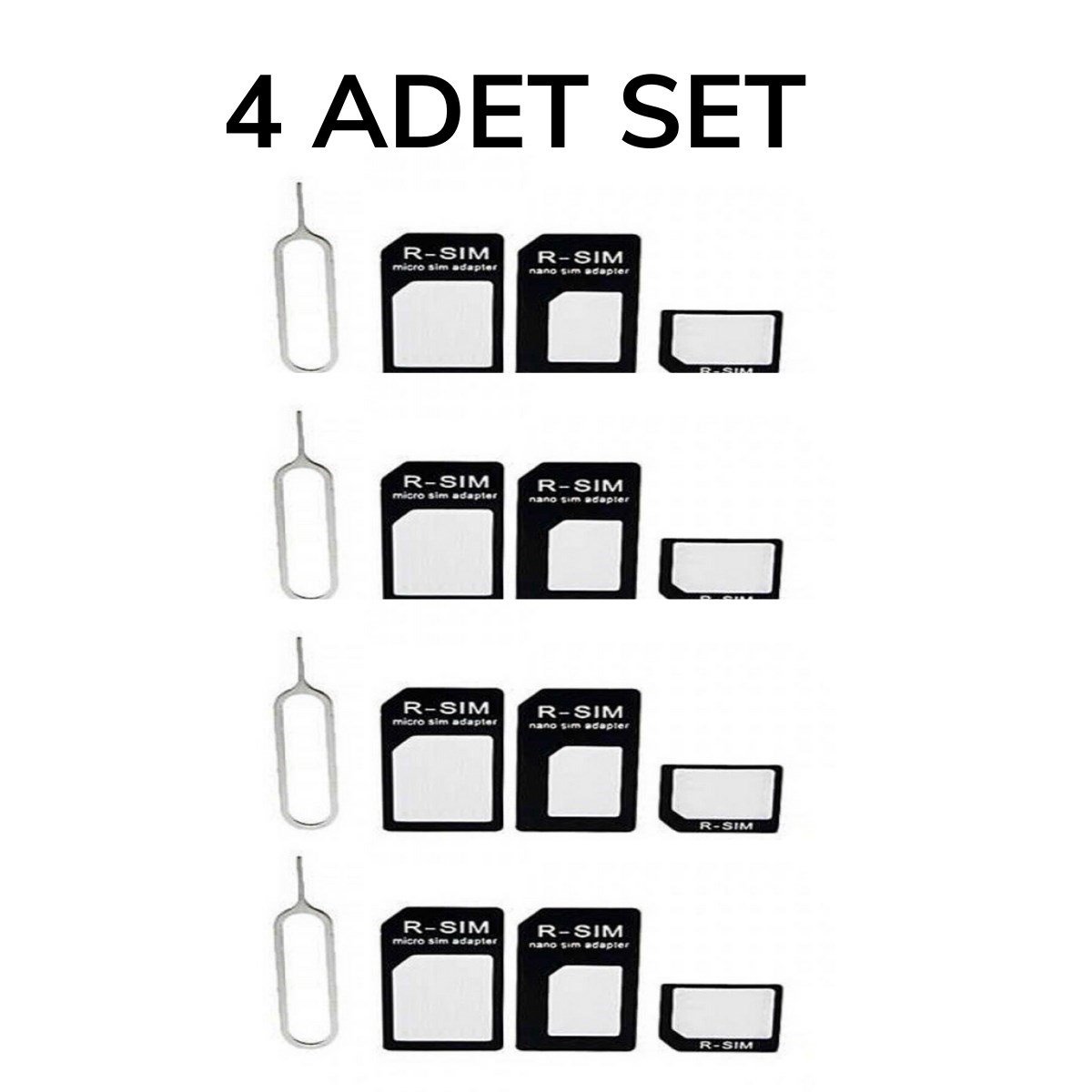 3'lü Nano Micro Sim Kart Dönüştürücü Adaptör ve Sim Kart İğnesi
