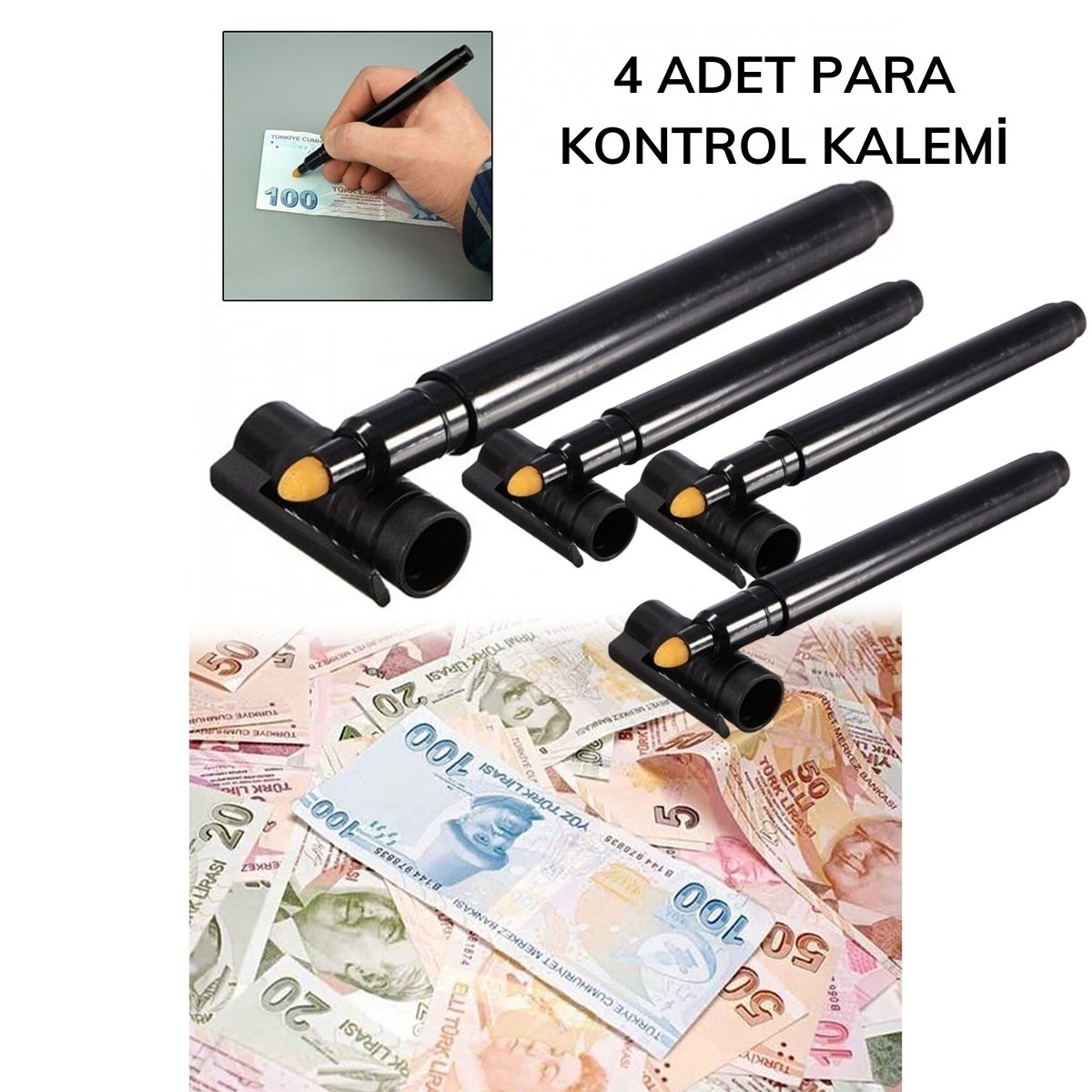Para Kontrol Kaleminin kullanımını anlamak için gerçek bir paranın üzerine sürdükten sonra herhangi bir kağıdın üzerine sürerek aradaki farkı inceleyiniz