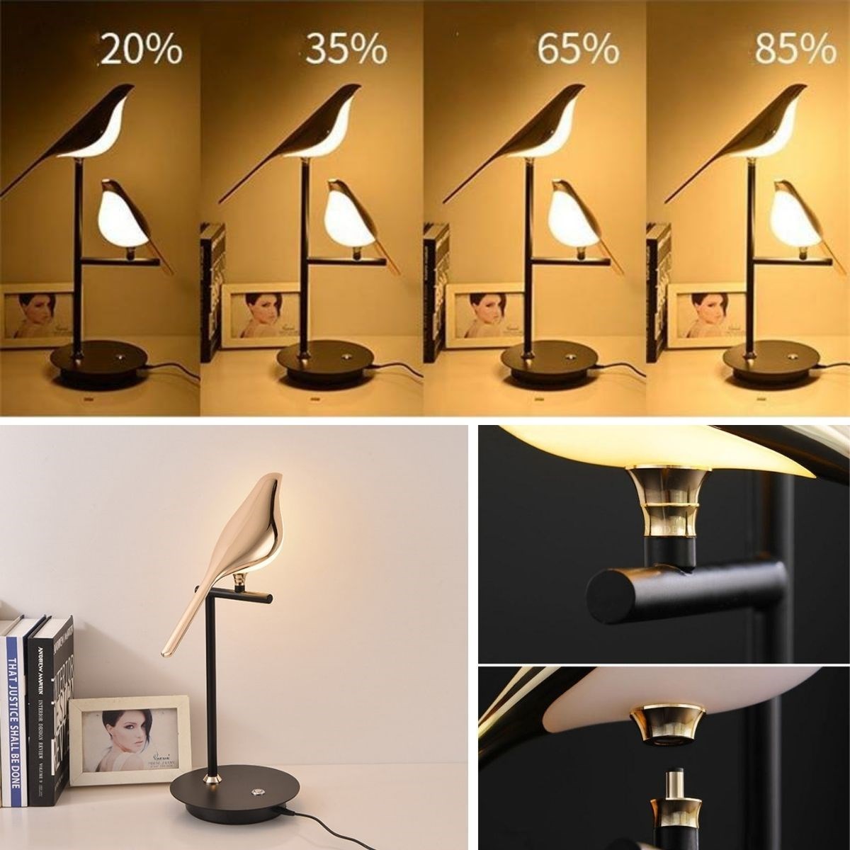 Paket İçeriği: 1 Adet BUFFER® Saksağan Kuş Modeli Tekli Dokunmatik Ayarlanabilir Aydınlatma Masa Üstü Gece Lambası Göz Korumalı Abajur