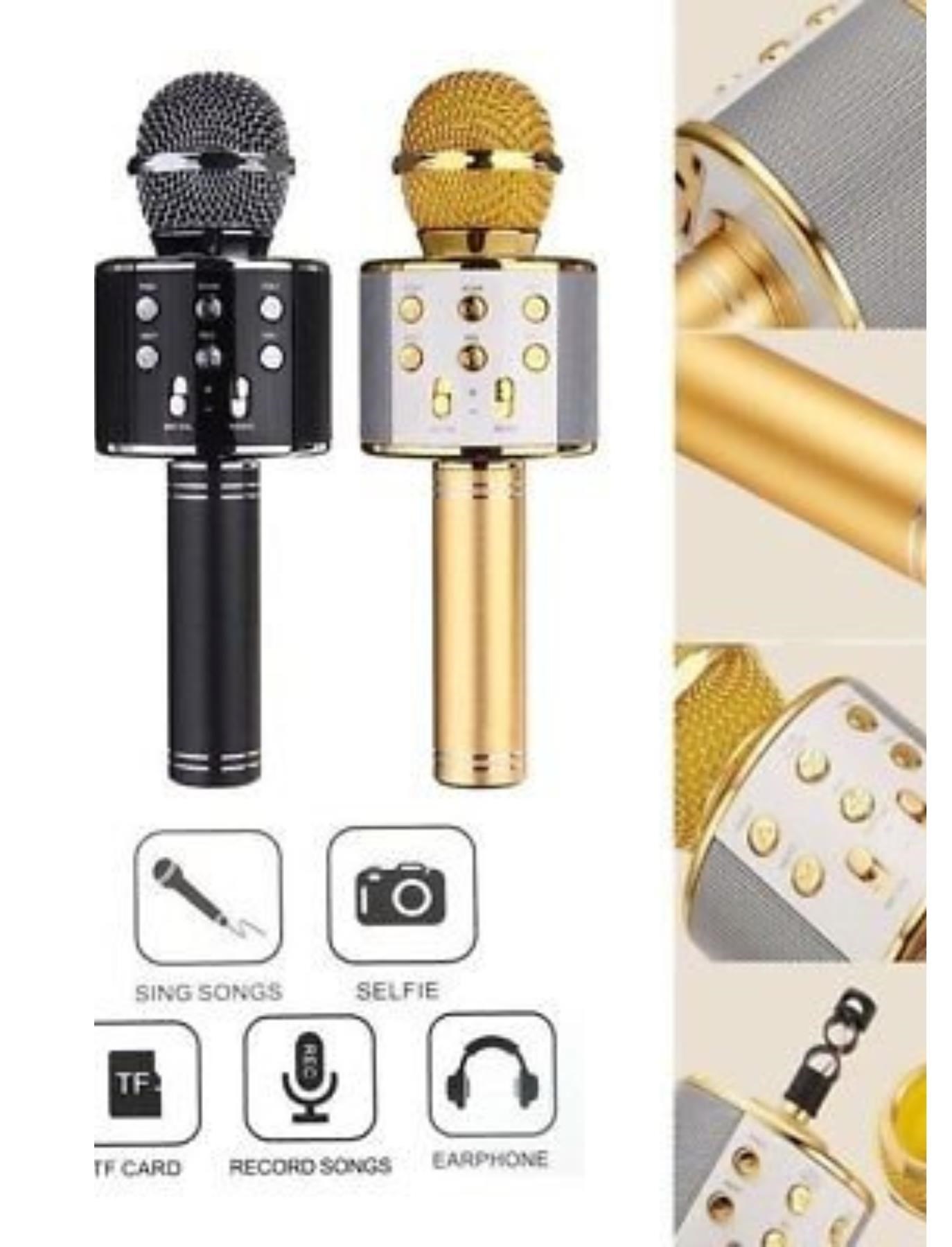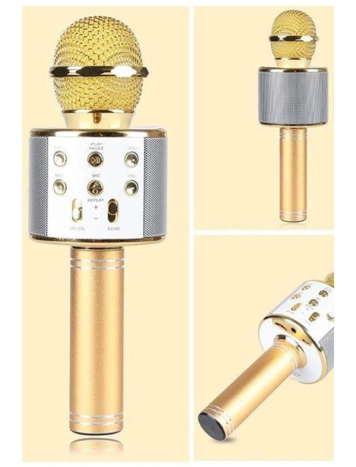Gold Altın Renkli Şarj Edilebilir Telefon Ve Usb Bağlantılı Şarkı Karaoke Mikrofon