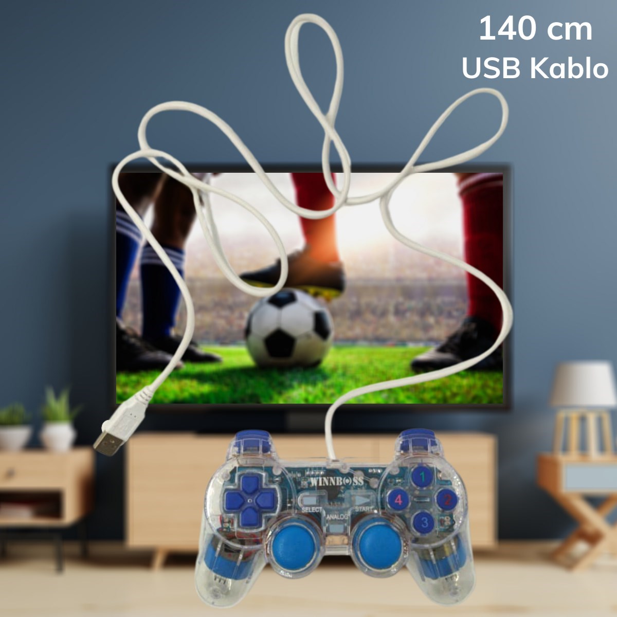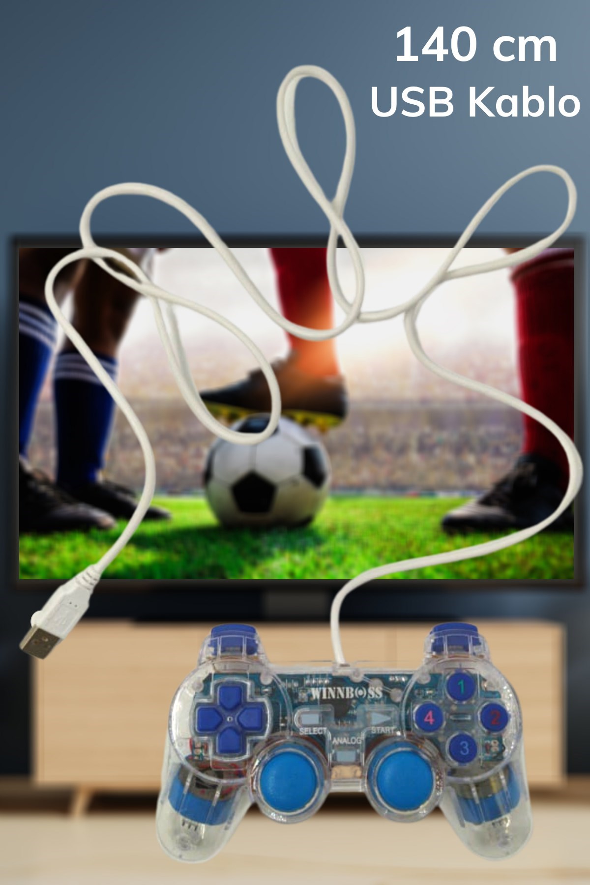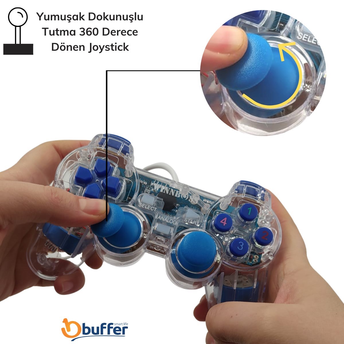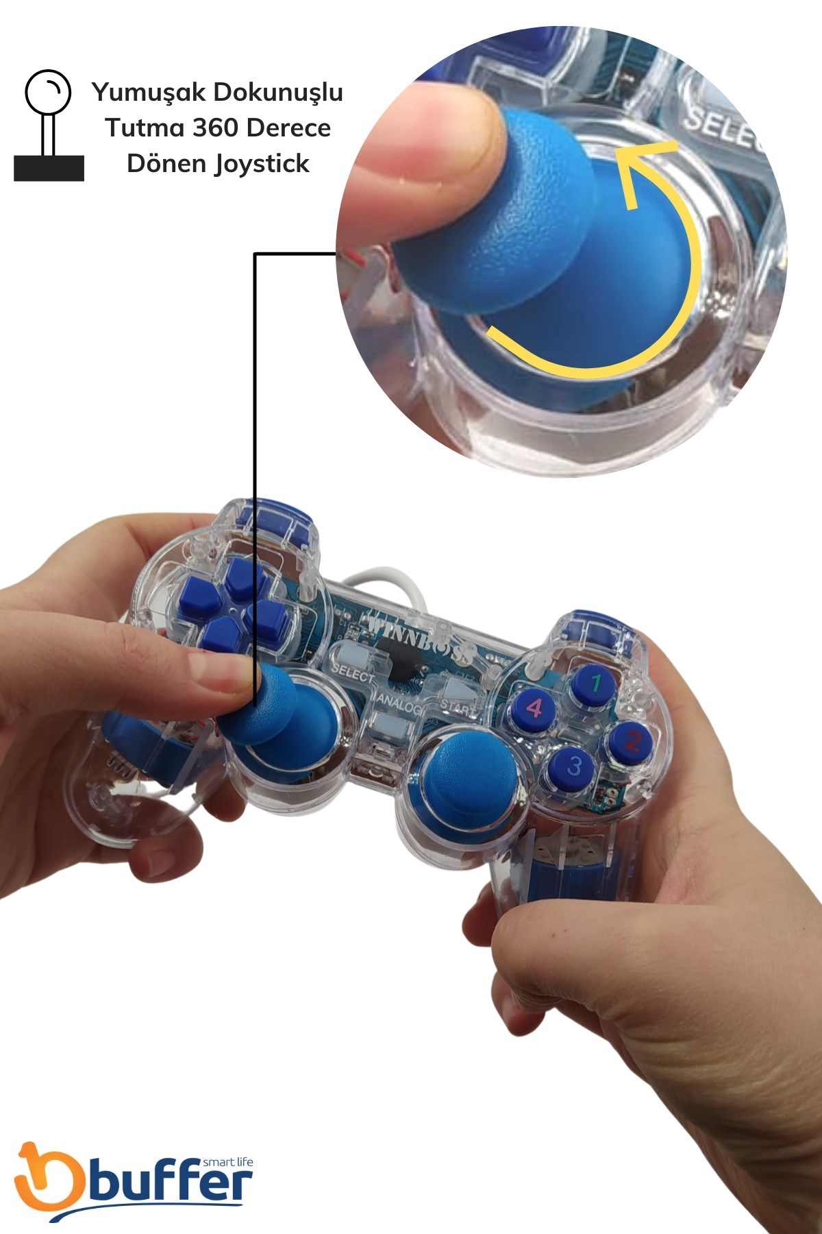 BUFFER® Şeffaf USBli Titreşimli Kablolu Gamepad Bilgisayar Pc Joystik Analog Oyun Konsolu Kolu