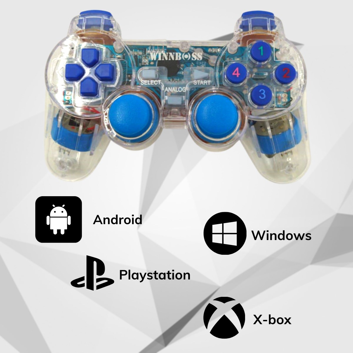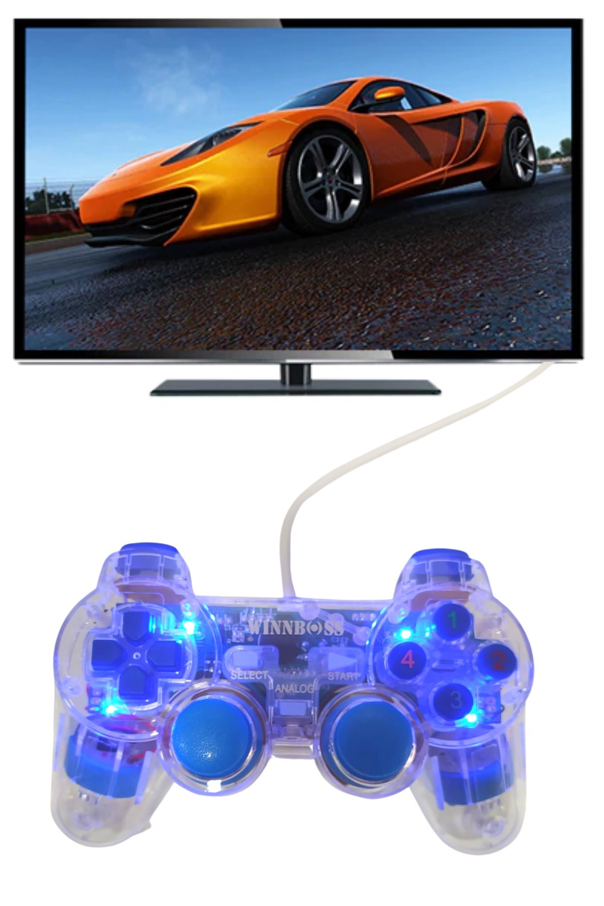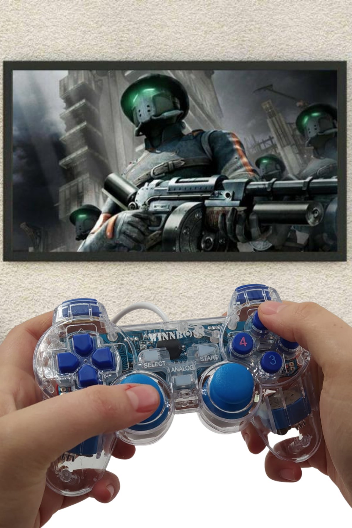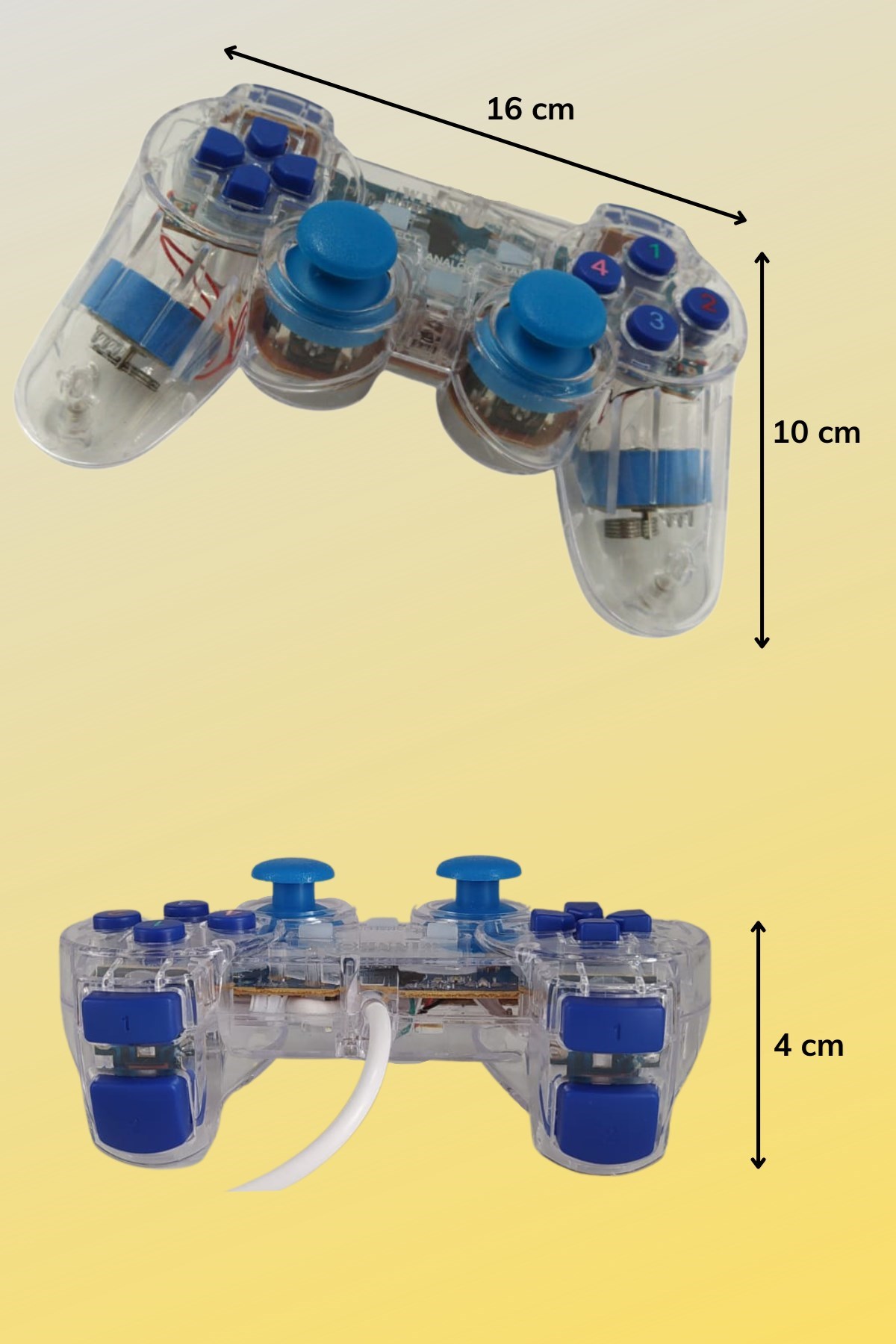 BUFFER® Şeffaf USBli Titreşimli Kablolu Gamepad Bilgisayar Pc Joystik Analog Oyun Konsolu Kolu