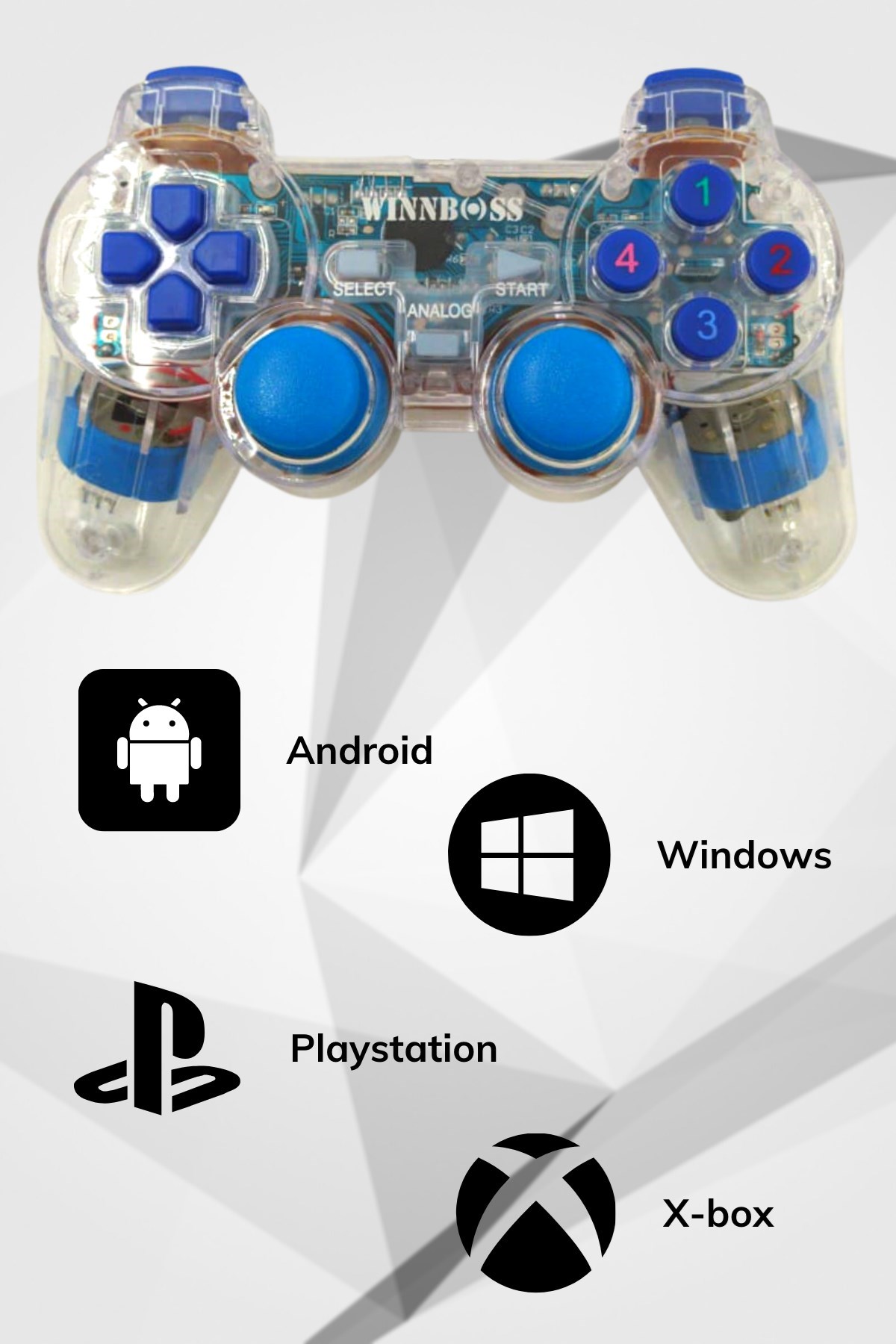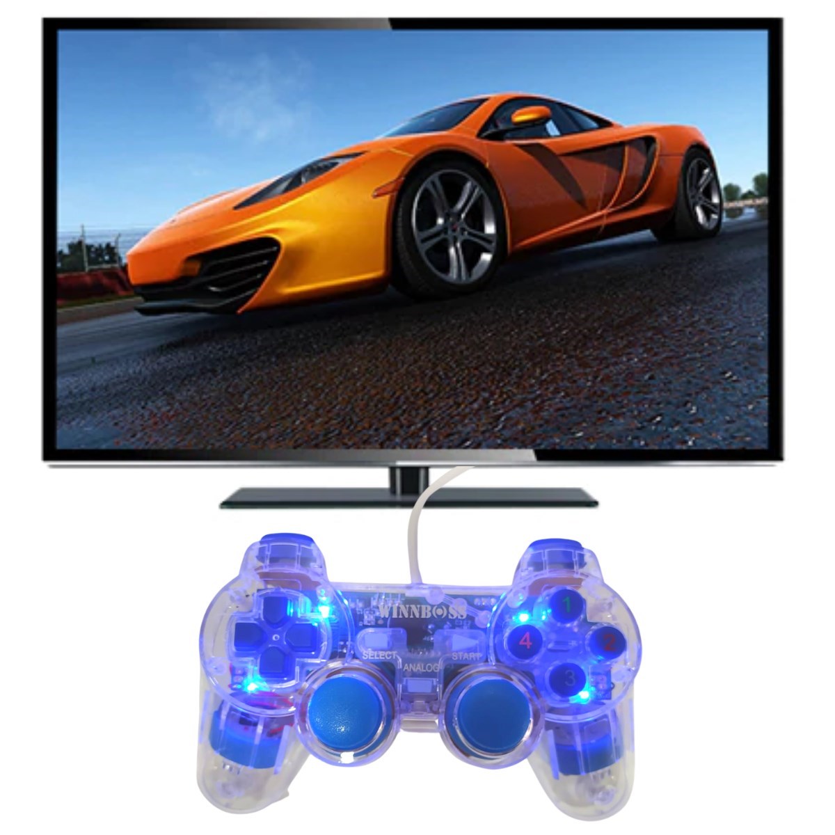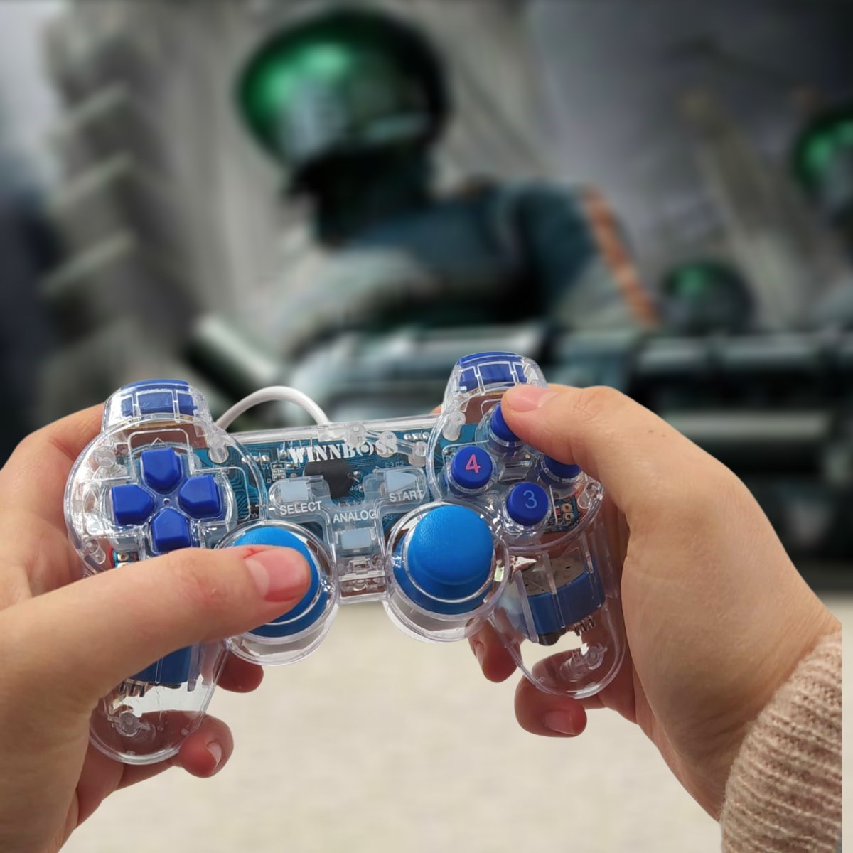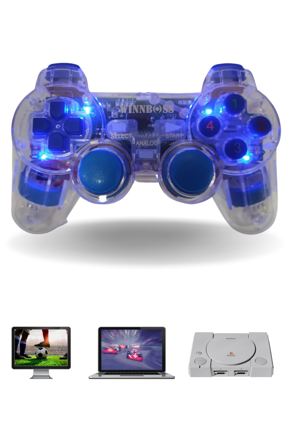 BUFFER® Şeffaf USBli Titreşimli Kablolu Gamepad Bilgisayar Pc Joystik Analog Oyun Konsolu Kolu