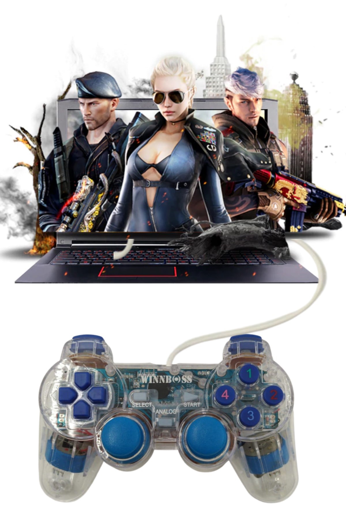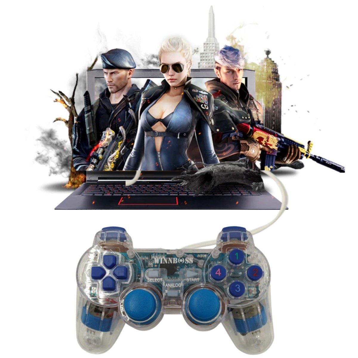 Buffer Şeffaf USB'li Titreşimli Kablolu Gamepad Bilgisayar Pc Joystik Analog Oyun Konsolu Kolu