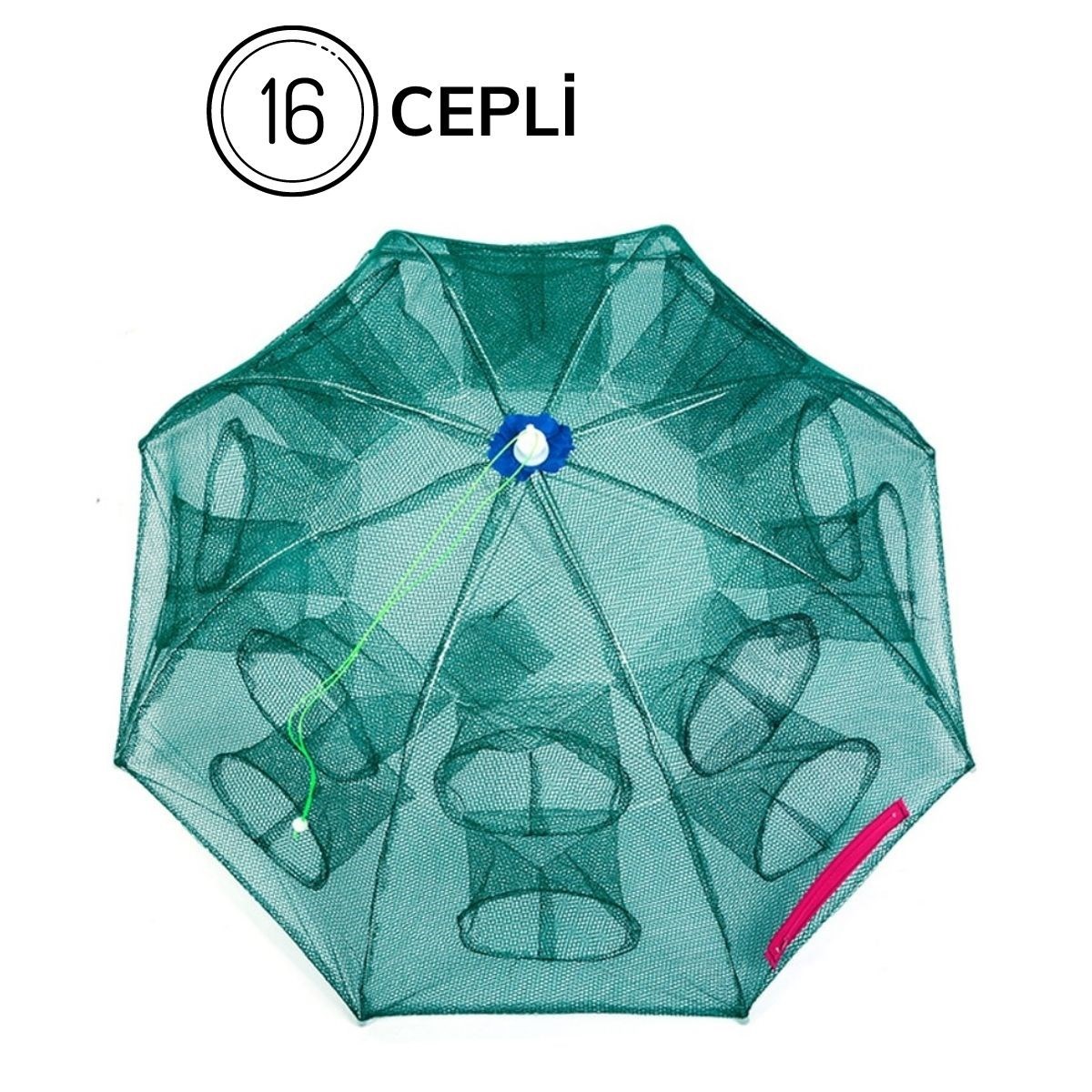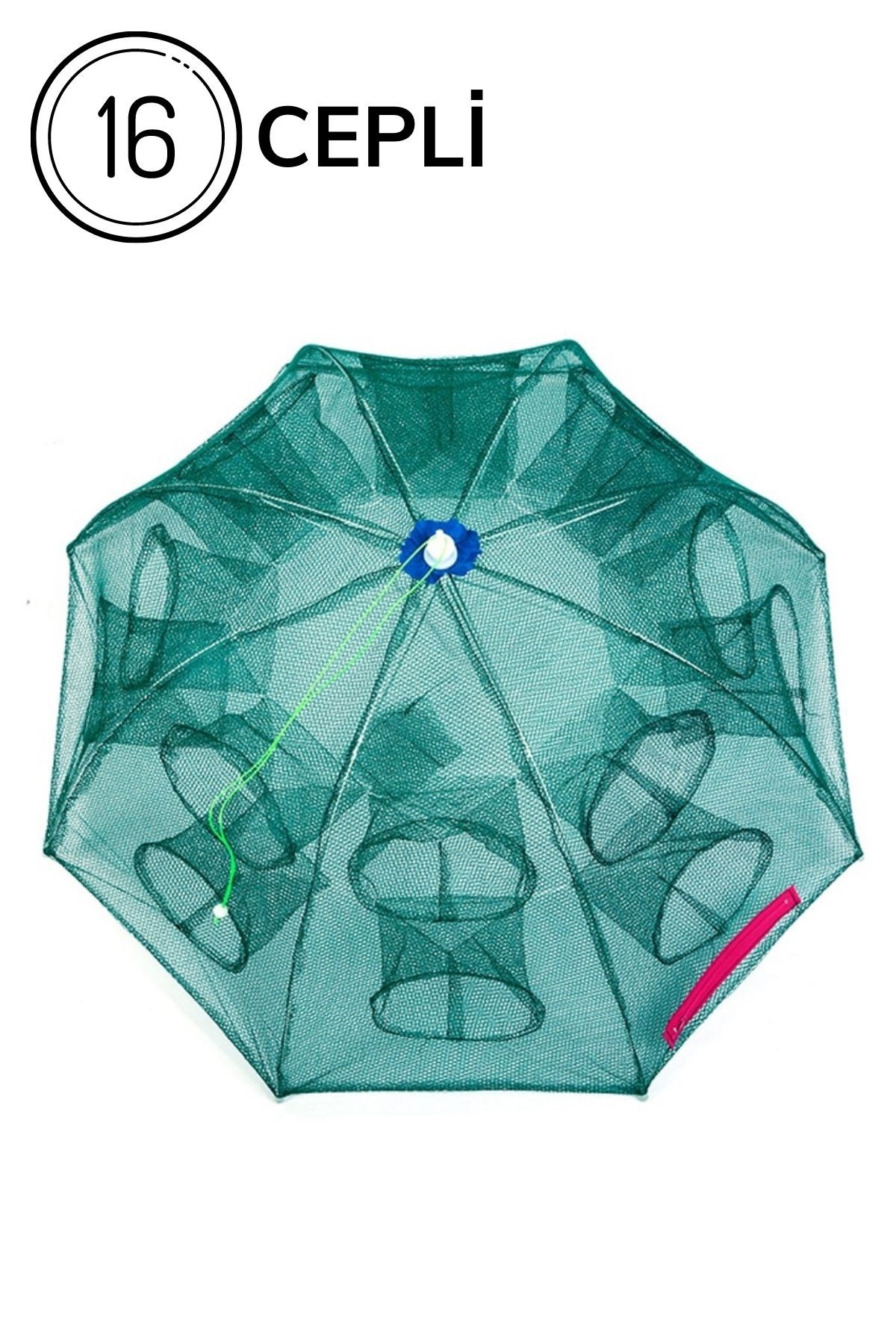 - Şemsiye Balık Ağı Yakalama Tutma Filesi 16 Cepli Büyük Boy Taşınabilir Serpme Balık Tuzağı her yere kolayca taşınabilmektedir