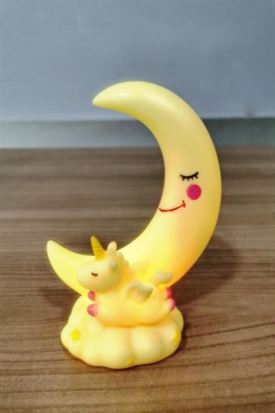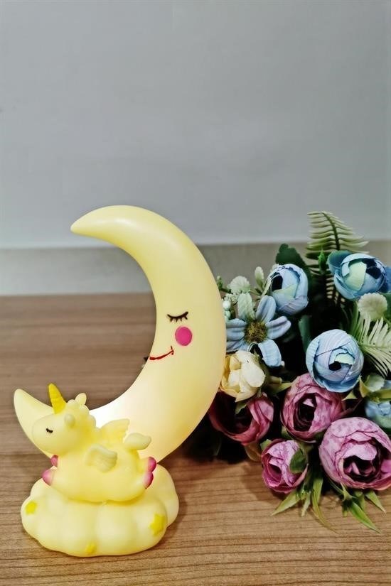 Sarı Ay Unicorn Çocuk Odası Lambası, sağlığa zararsız ve kaliteli plastik malzemeden üretilmiştir