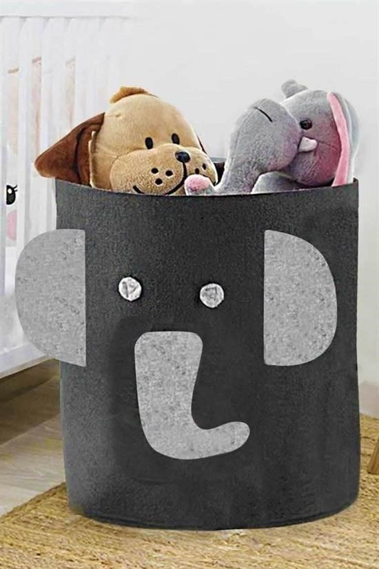 Sevimli Fil Desenli Çocuk Bebek Odası Kirli Çamaşır Sepeti Oyuncak Yuvarlak Saklama Kutusu Paket Ölçüleri