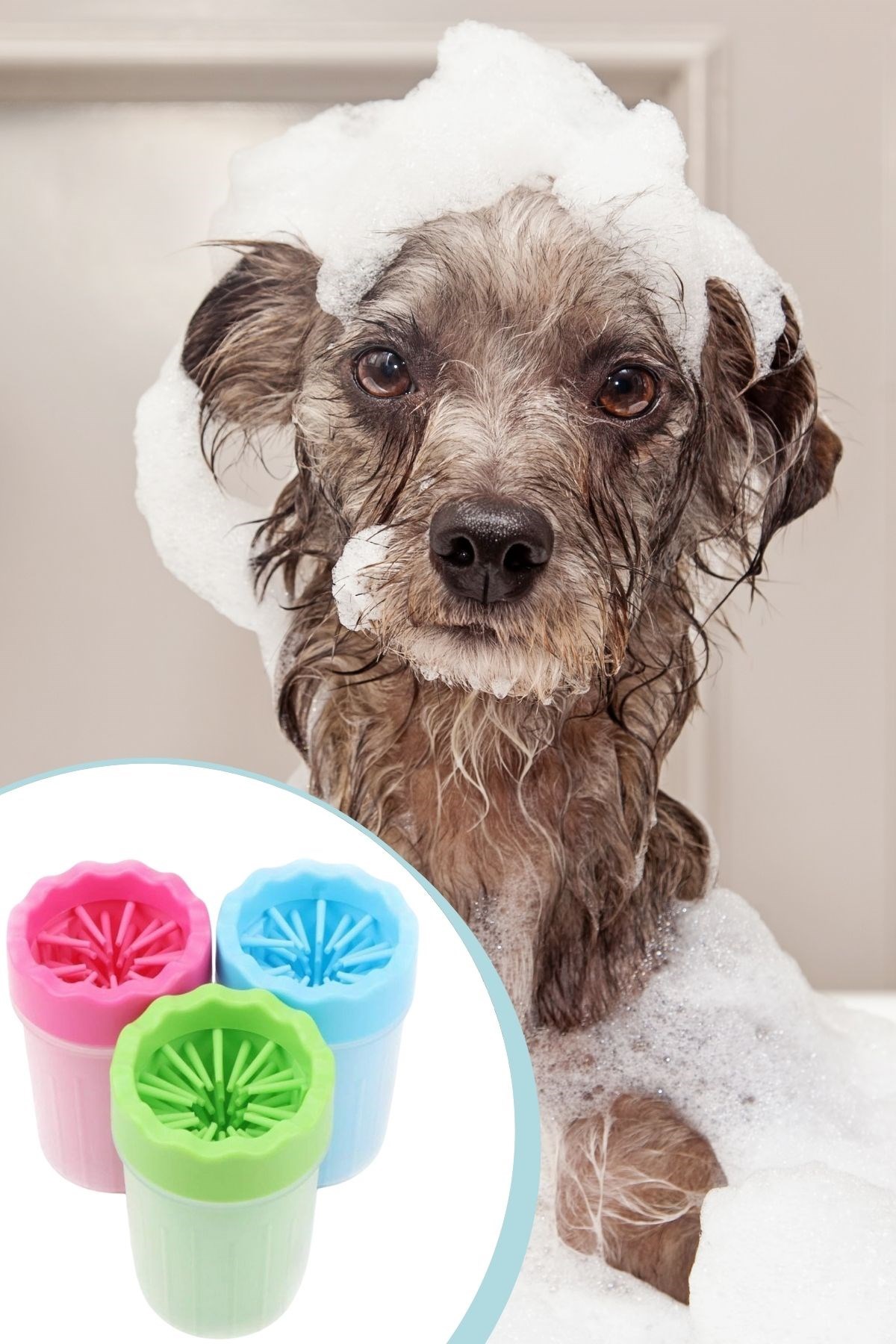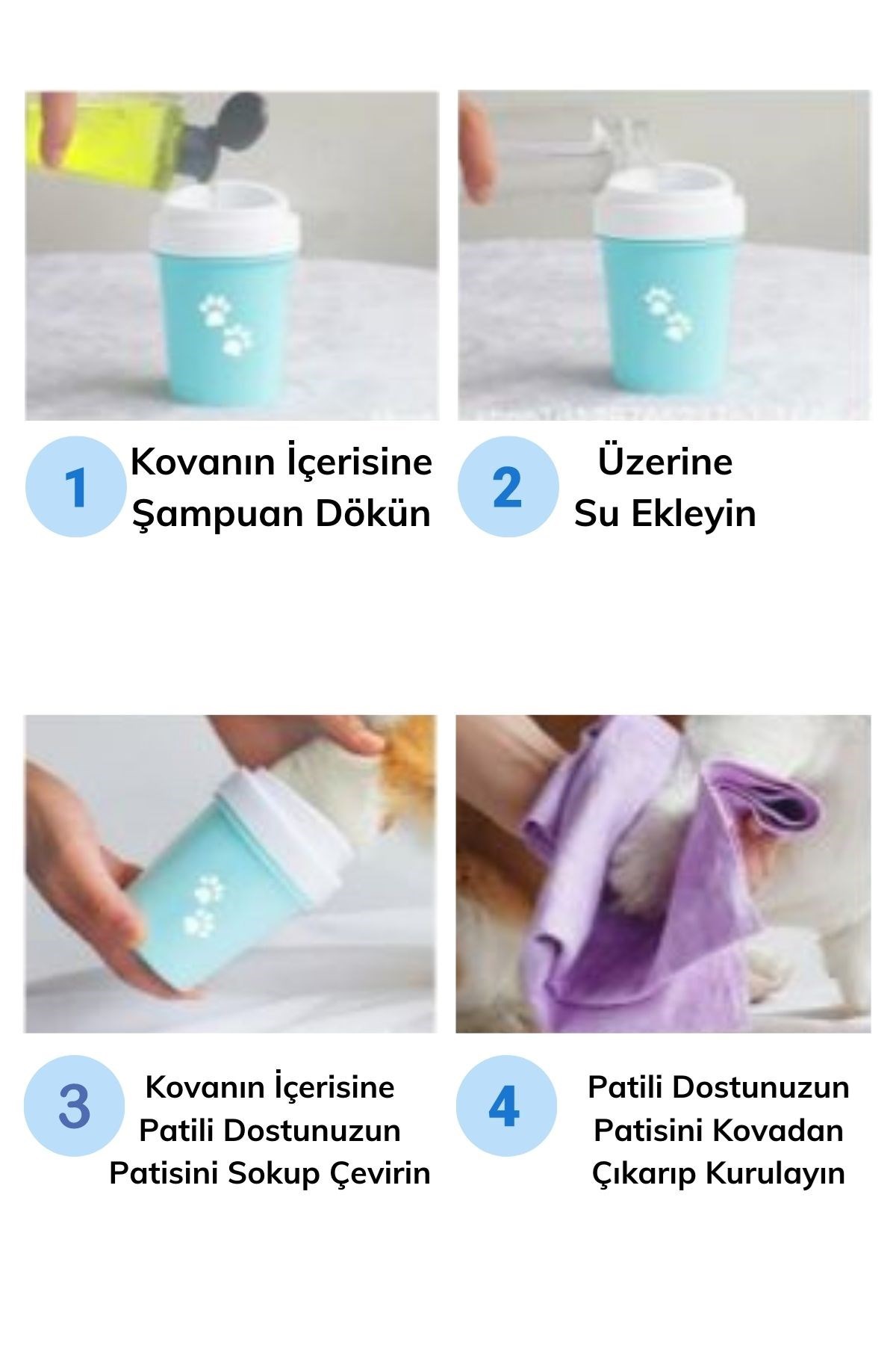 BUFFER® Silikon Jel Fırçalı Kedi Köpek Pati Ayak Temizleme Kovası Büyük