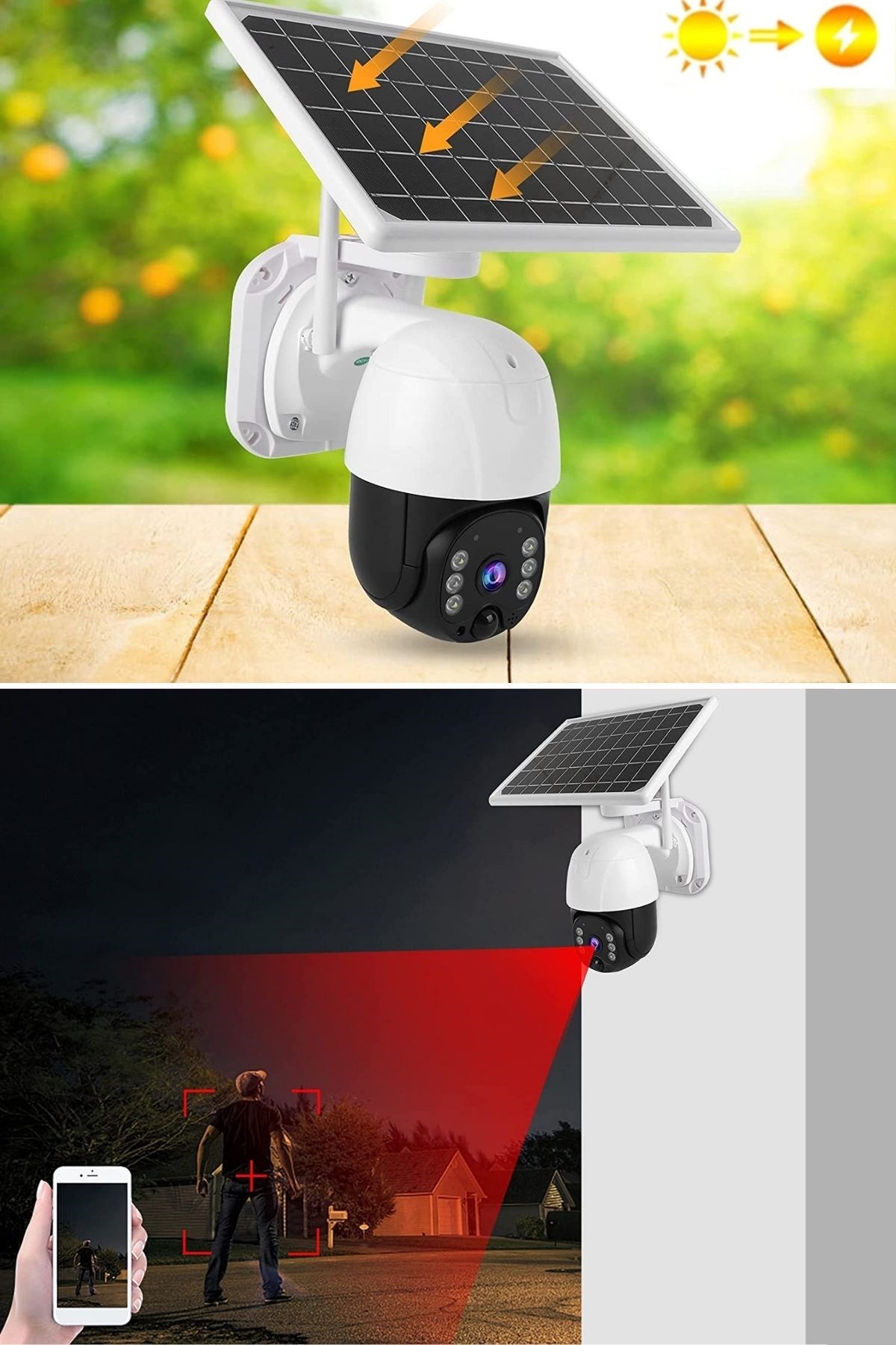 Güç Tasarrufu: Solar panelleri sayesinde bu güvenlik kamerası enerji tasarrufu sağlar. Güneş ışığına maruz kaldığında, güç kaynağı olarak solar panelleri kullanarak şarj olur. Bu sayede, ek bir enerji kaynağına ihtiyaç duymadan çalışabilir.