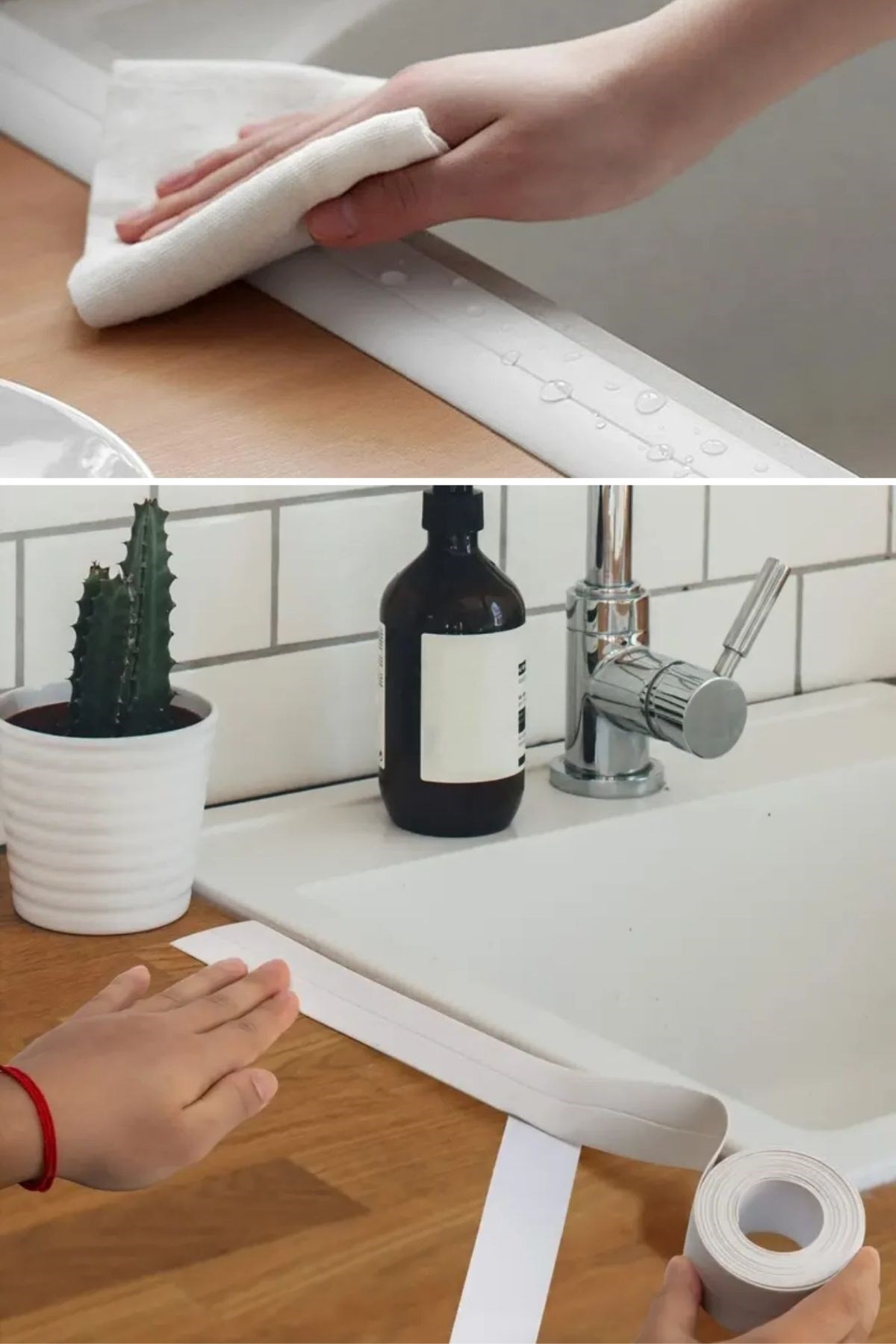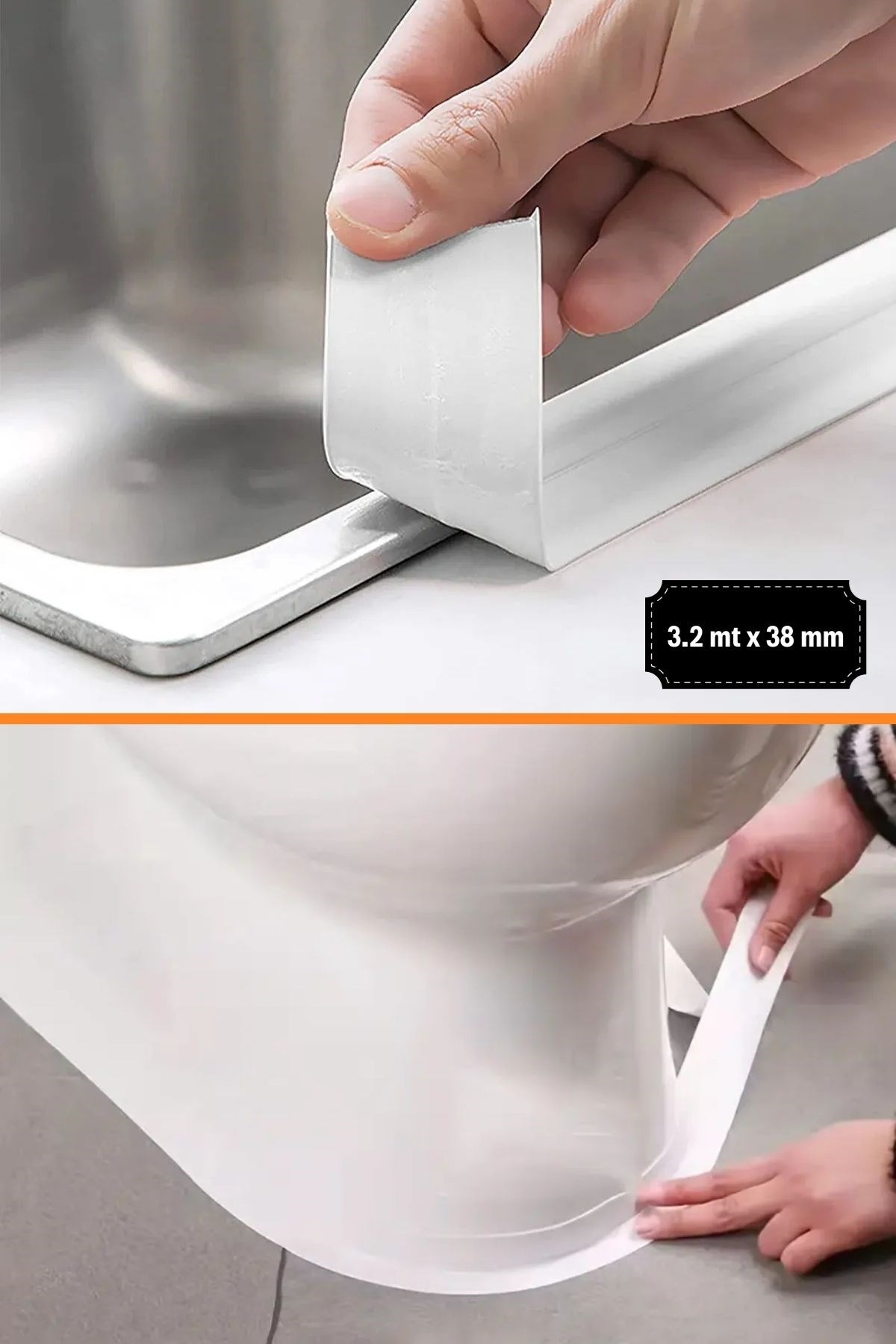 BUFFER® Su Sızdırmaz Banyo Mutfak Lavabo Küvet İzolasyon Şerit Bant,Lavabo Kenar Bandı 3.2 mt x 38 mm