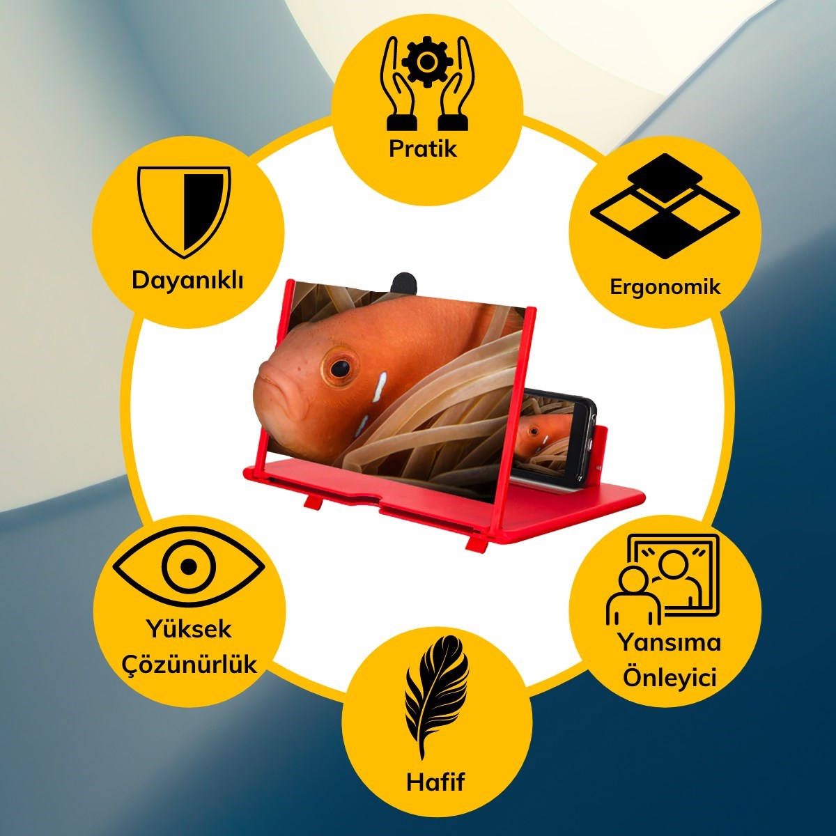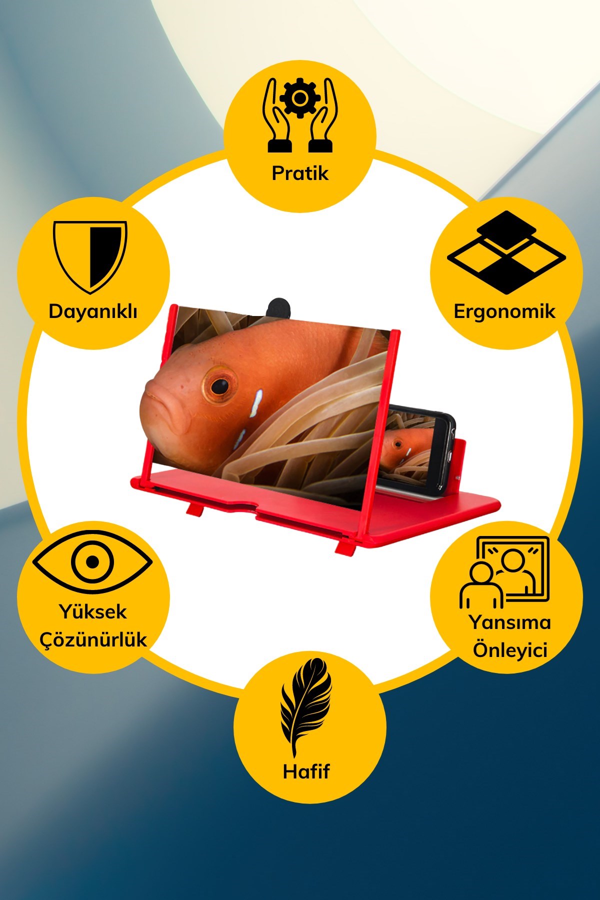 Bu, cep telefonunun ekranını büyütebilen göz koruyucu bir cep telefonu aparatıdır