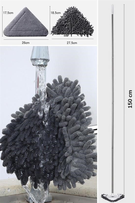 Buffer® Teleskopik Saplı 150 cm Üçgen Mop Cam Duvar Tavan Fayans Parke Temizleyici Mop
