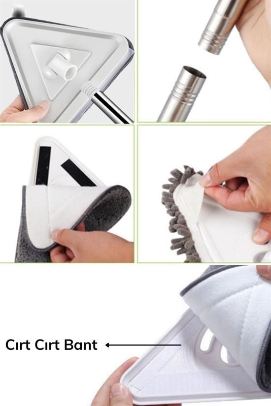 Özel mikrofiber bezi ve çekpası sayesinde cam temizliği yapmak artık çok kolay Üçgen başlık tasarımı 360 derece hareket edebilir, tüm köşeleri el değmeden temizleyebilir, kurulayabilirsiniz