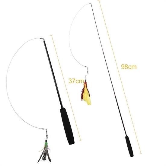 BUFFER® Teleskopik Tüylü ve Çanlı Boyu Ayarlanabilir Elastik Eğlenceli Kedi Oyun Oltası