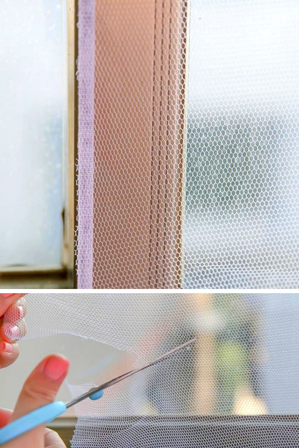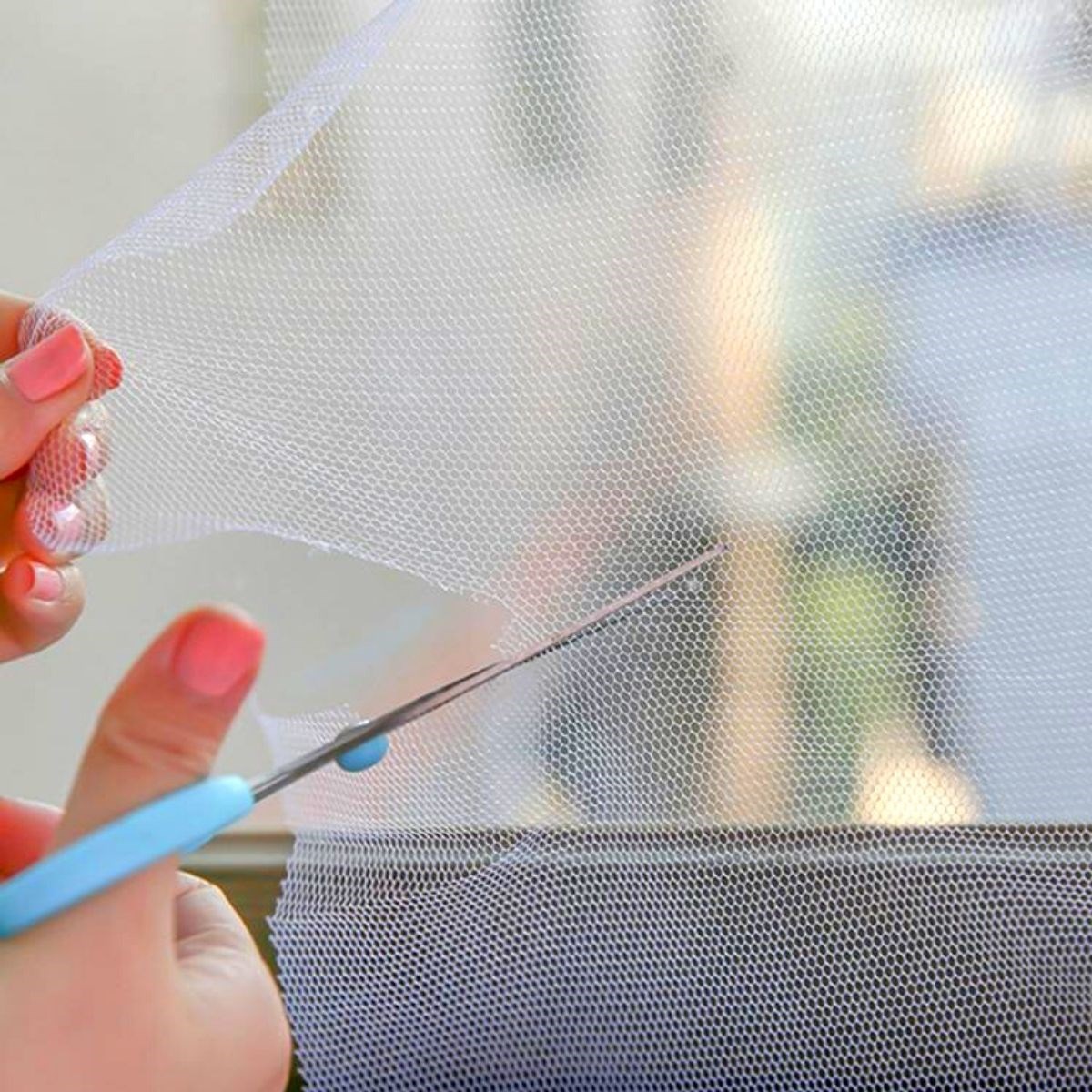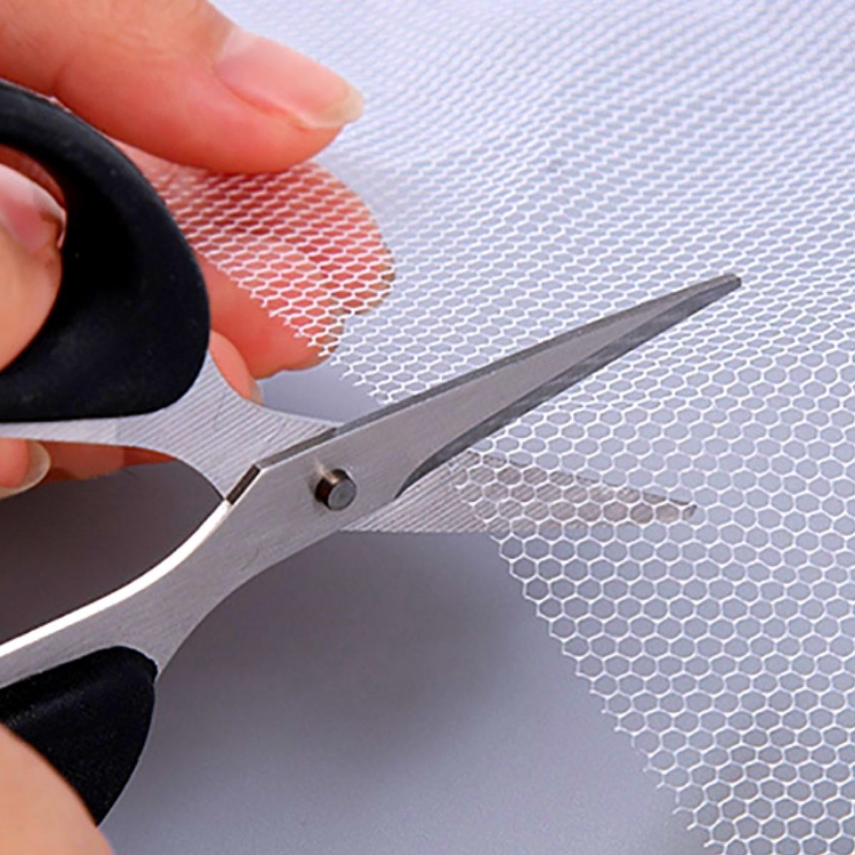 Sineklik tülünü yapışkanlı bandın üzerindeki özel yüzeye tutturarak çerçeve ölçüsüne göre işaretleyin ve fazla olan kısımları kesiniz