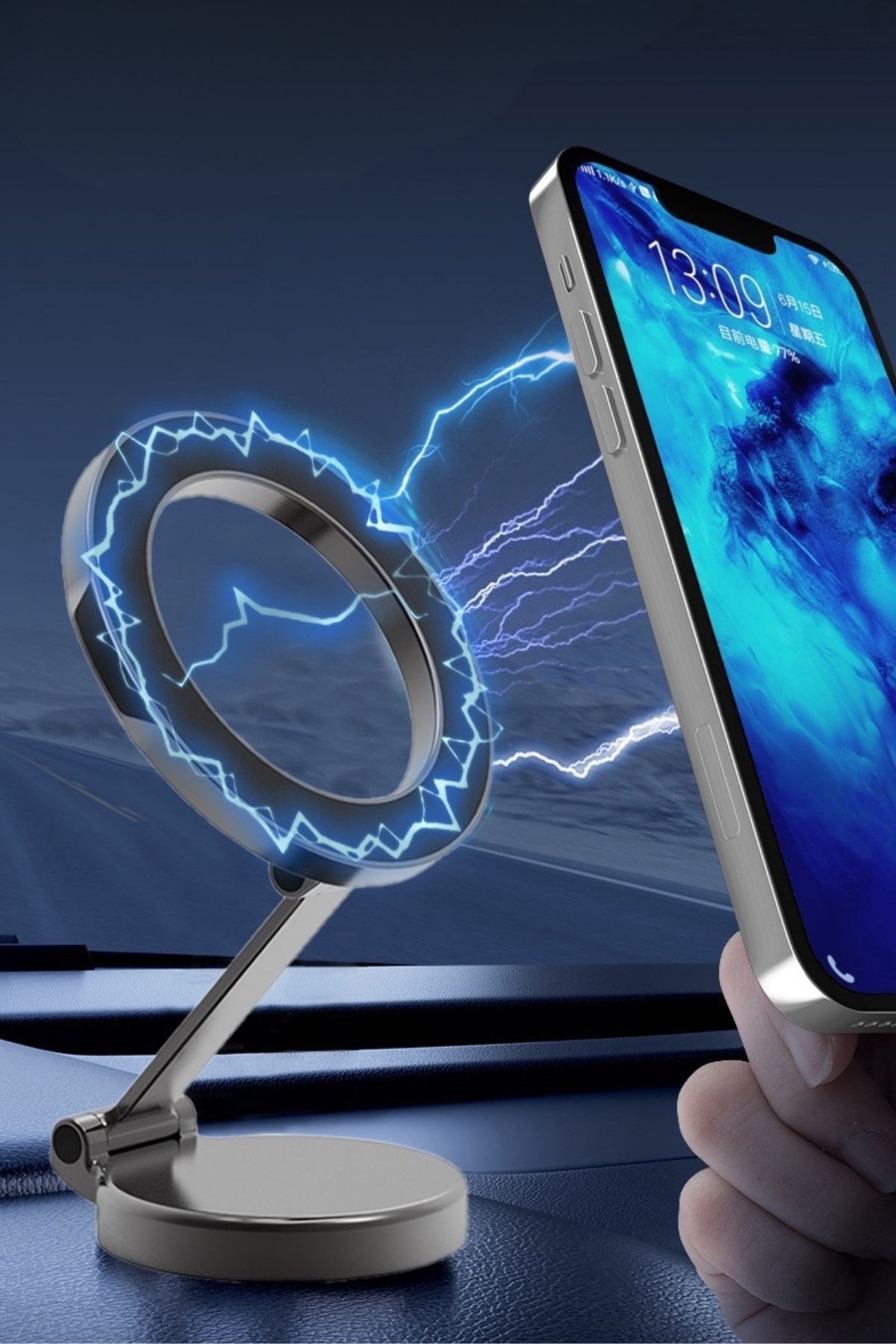 Tüm Telefonlarla Uyumlu Manyetik Araç Telefonu Tutacağı Katlanır 360 Derece Dönen Telefon Standı, sürüş sırasında telefonunuzu güvenli ve pratik bir şekilde kullanmanızı sağlayan bir araç içi aksesuardır. Modern ve kompakt tasarımı sayesinde aracınızın içinde fazla yer kaplamaz, kullanımı kolay ve şık bir çözüm sunar.