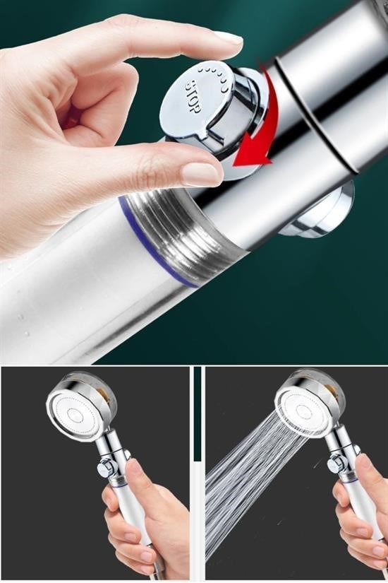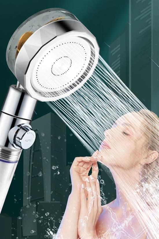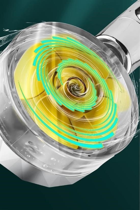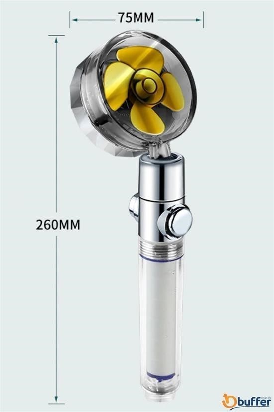 BUFFER® Turbo Pervaneli ve Filtreli Su Tasarruflu 360 Derece Dönebilen Ayarlanabilir Tazyikli Duş Başlığı