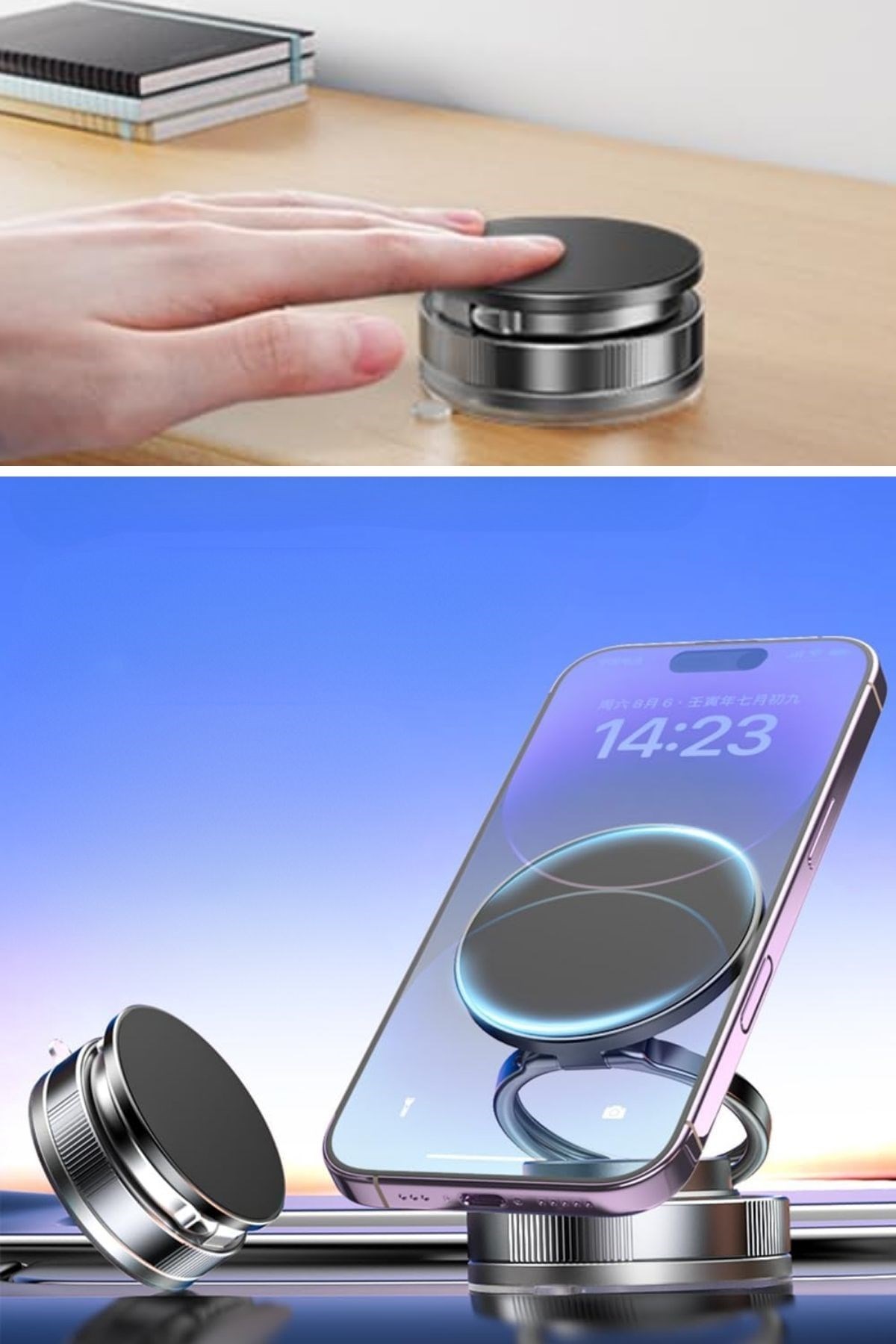 BUFFER® Vakumlu Manyetik Telefon Tutucu – Güçlü Vakum 360° Döner Araç İçi Telefon Standı, Ultra Sabit Manyetik Destekli Mobil Cihaz Aparatı