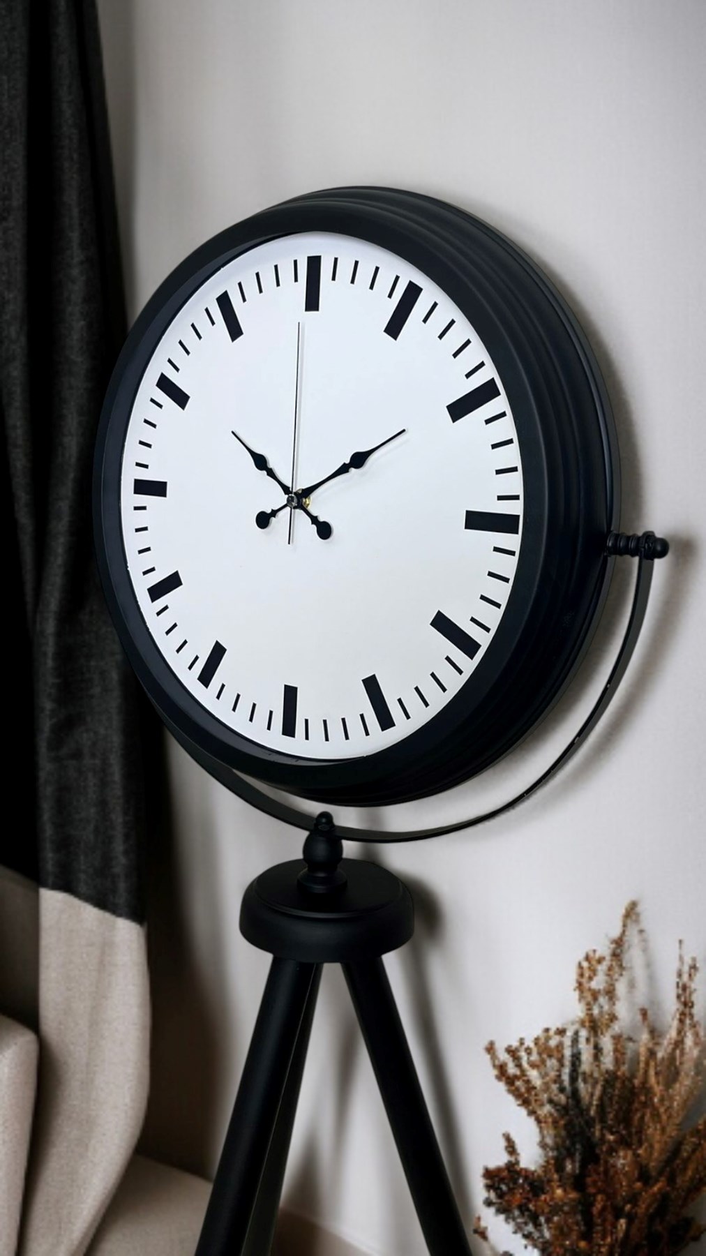 Siyah & Beyaz Saf Sade Tasarım Tripod Ayaklı Saat