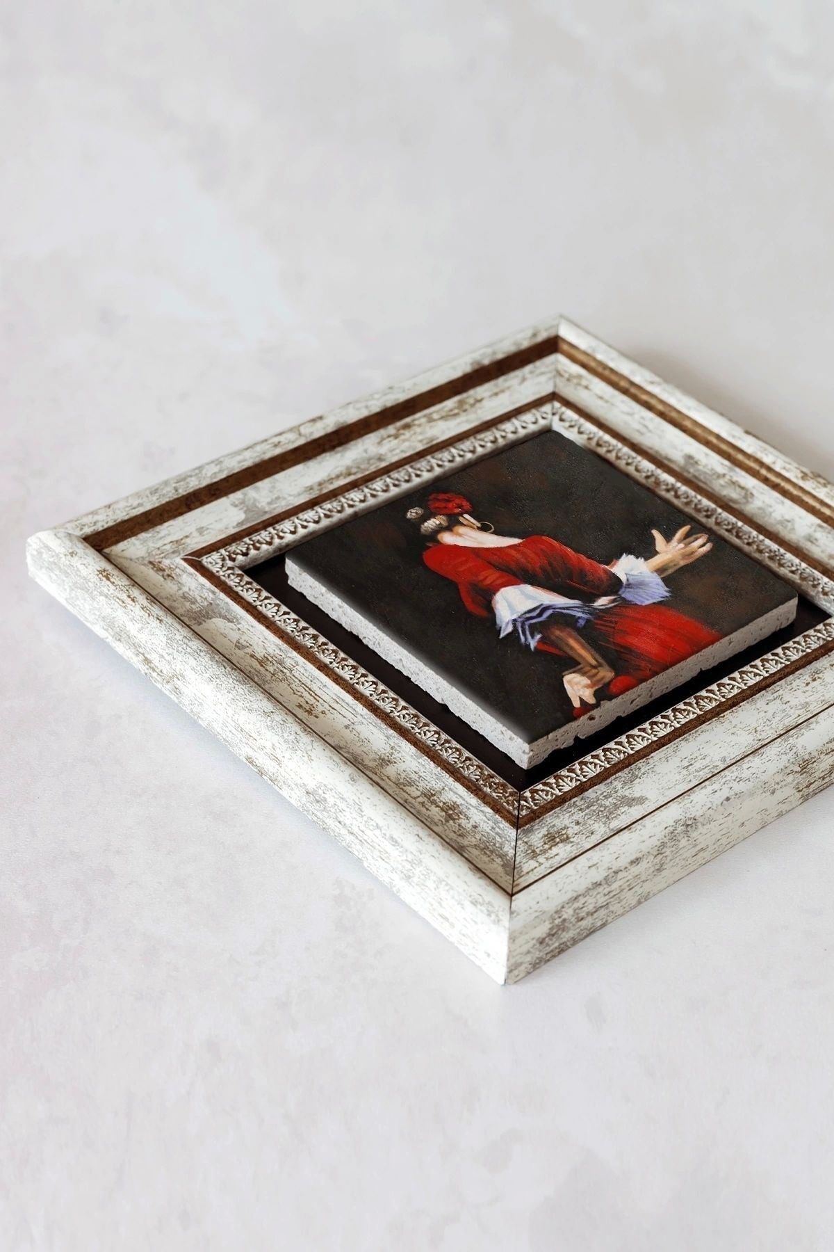 Ürün hakkında: Ölçüleri: 20 cm x 20 cm'dir. ; Kalınlık :2,5 cm'dir. ; Ürünün arka tarafında askı aparatı bulunmaktadır. ; Kullanılan çerçeveler yüksek kaliteli, eskitme görünümlü kompozit malzemeden üretilmiştir. ; Taşların yüzeyindeki baskı teknolojisi özel olup sağlığa hiçbir zararı yoktur. ; Kullanılan malzeme dağdan çıkan gerçek taş oldugu için yüzeyinde belli oranda gözenek bulunması ve renginin krem renginin tonlarını barındırması normaldir kimyasal malzeme teması Yüzey deformasyona maruz kalabilir. ; Nemli bezle silinerek temizlenebilir. ; Isıya, suya ve neme dayanıklıdır. ; Kutu içeriği: Orijinal kutu içerisinde 1 adet çerçeveli taş duvar dekoru. ; 1 adet çerçeveli duvar dekoru ağırlığı: 250 gr çerçeve askısı ile duvara montajı yapılabilir.;