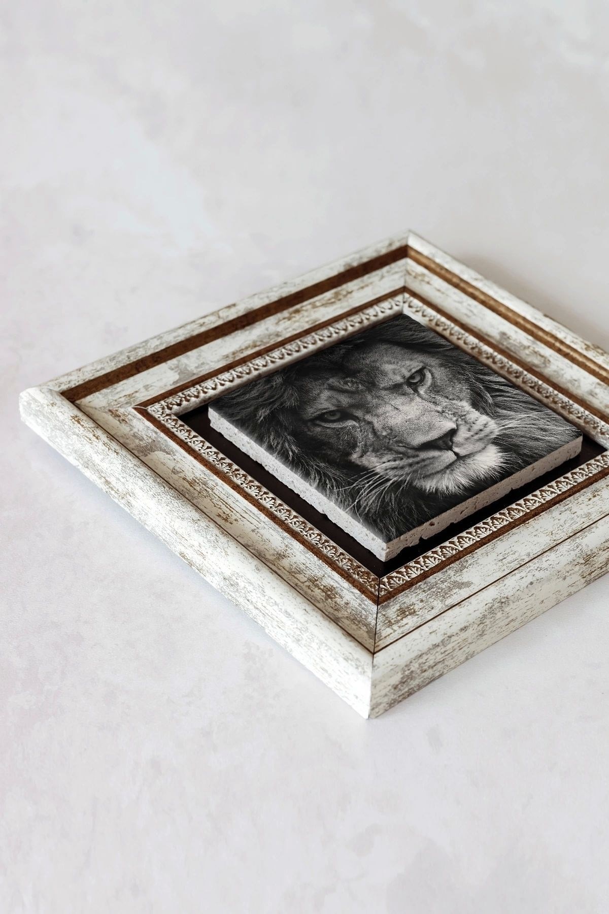 Ürün hakkında: Ölçüleri: 20 cm x 20 cm'dir. ; Kalınlık :2,5 cm'dir. ; Ürünün arka tarafında askı aparatı bulunmaktadır. ; Kullanılan çerçeveler yüksek kaliteli, eskitme görünümlü kompozit malzemeden üretilmiştir. ; Taşların yüzeyindeki baskı teknolojisi özel olup sağlığa hiçbir zararı yoktur. ; Kullanılan malzeme dağdan çıkan gerçek taş oldugu için yüzeyinde belli oranda gözenek bulunması ve renginin krem renginin tonlarını barındırması normaldir kimyasal malzeme teması Yüzey deformasyona maruz kalabilir. ; Nemli bezle silinerek temizlenebilir. ; Isıya, suya ve neme dayanıklıdır. ; Kutu içeriği: Orijinal kutu içerisinde 1 adet çerçeveli taş duvar dekoru. ; 1 adet çerçeveli duvar dekoru ağırlığı: 250 gr çerçeve askısı ile duvara montajı yapılabilir.;