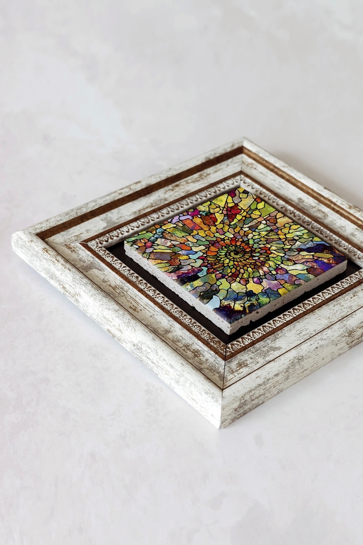 Ürün hakkında: Ölçüleri: 20 cm x 20 cm'dir. ; Kalınlık :2,5 cm'dir. ; Ürünün arka tarafında askı aparatı bulunmaktadır. ; Kullanılan çerçeveler yüksek kaliteli, eskitme görünümlü kompozit malzemeden üretilmiştir. ; Taşların yüzeyindeki baskı teknolojisi özel olup sağlığa hiçbir zararı yoktur. ; Kullanılan malzeme dağdan çıkan gerçek taş oldugu için yüzeyinde belli oranda gözenek bulunması ve renginin krem renginin tonlarını barındırması normaldir kimyasal malzeme teması Yüzey deformasyona maruz kalabilir. ; Nemli bezle silinerek temizlenebilir. ; Isıya, suya ve neme dayanıklıdır. ; Kutu içeriği: Orijinal kutu içerisinde 1 adet çerçeveli taş duvar dekoru. ; 1 adet çerçeveli duvar dekoru ağırlığı: 250 gr çerçeve askısı ile duvara montajı yapılabilir.;