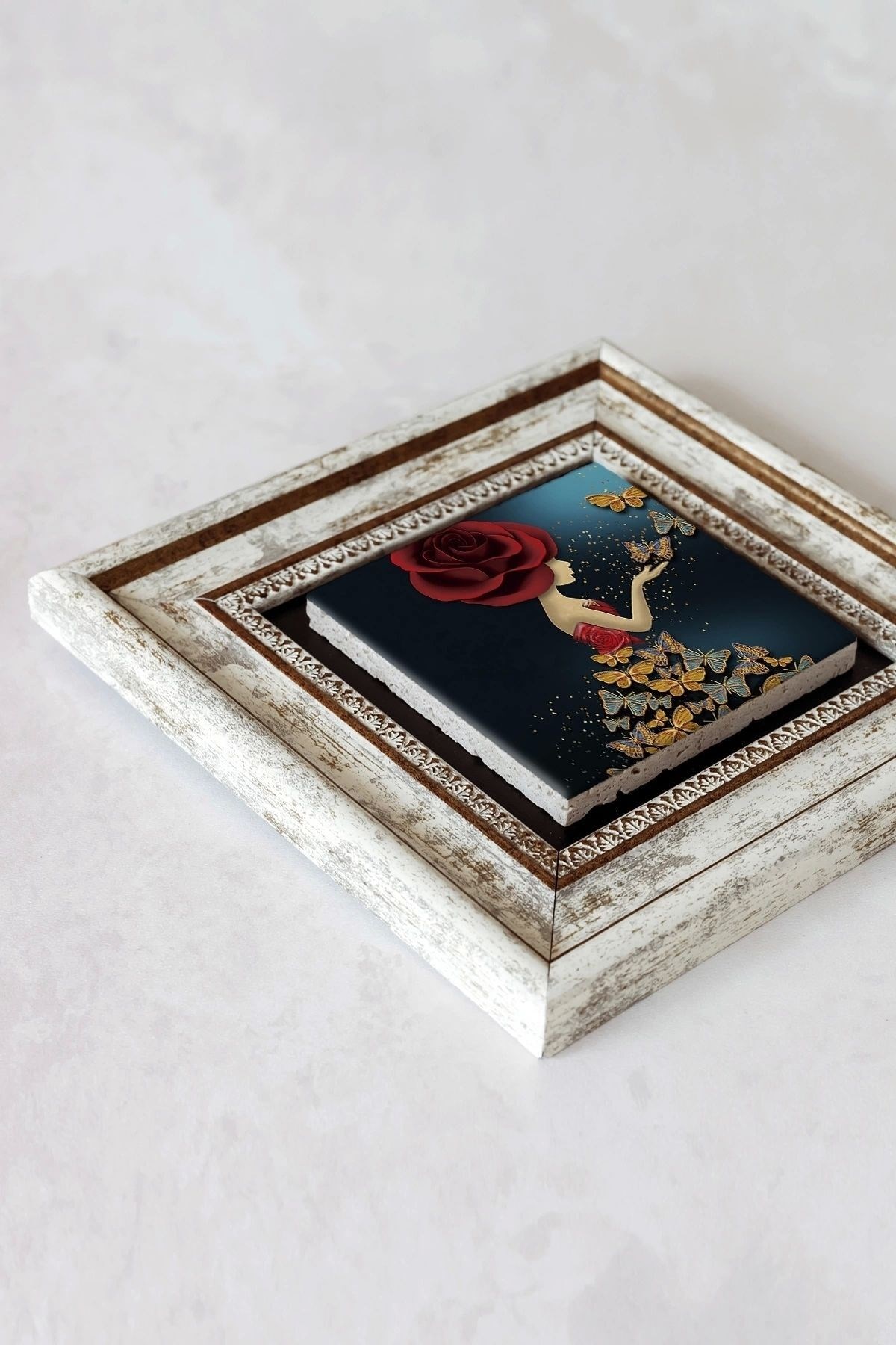 Ürün hakkında: Ölçüleri: 20 cm x 20 cm'dir. ; Kalınlık :2,5 cm'dir. ; Ürünün arka tarafında askı aparatı bulunmaktadır. ; Kullanılan çerçeveler yüksek kaliteli, eskitme görünümlü kompozit malzemeden üretilmiştir. ; Taşların yüzeyindeki baskı teknolojisi özel olup sağlığa hiçbir zararı yoktur. ; Kullanılan malzeme dağdan çıkan gerçek taş oldugu için yüzeyinde belli oranda gözenek bulunması ve renginin krem renginin tonlarını barındırması normaldir kimyasal malzeme teması Yüzey deformasyona maruz kalabilir. ; Nemli bezle silinerek temizlenebilir. ; Isıya, suya ve neme dayanıklıdır. ; Kutu içeriği: Orijinal kutu içerisinde 1 adet çerçeveli taş duvar dekoru. ; 1 adet çerçeveli duvar dekoru ağırlığı: 250 gr çerçeve askısı ile duvara montajı yapılabilir.;