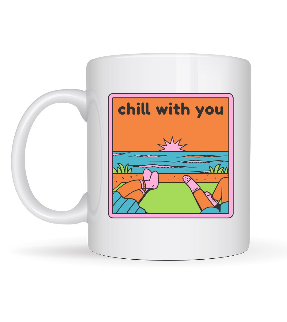 “Chill With You” yazılı bu özel tasarım porselen kupa, gün batımında uzanıp dinlenen iki figürle birlikte sakinliği, huzuru ve birlikte geçirilen keyifli anları anlatıyor. Yumuşak renkleri, sıcak tonları ve tatlı illüstrasyonu sayesinde baktıkça içini ısıtan bir tasarıma sahip.