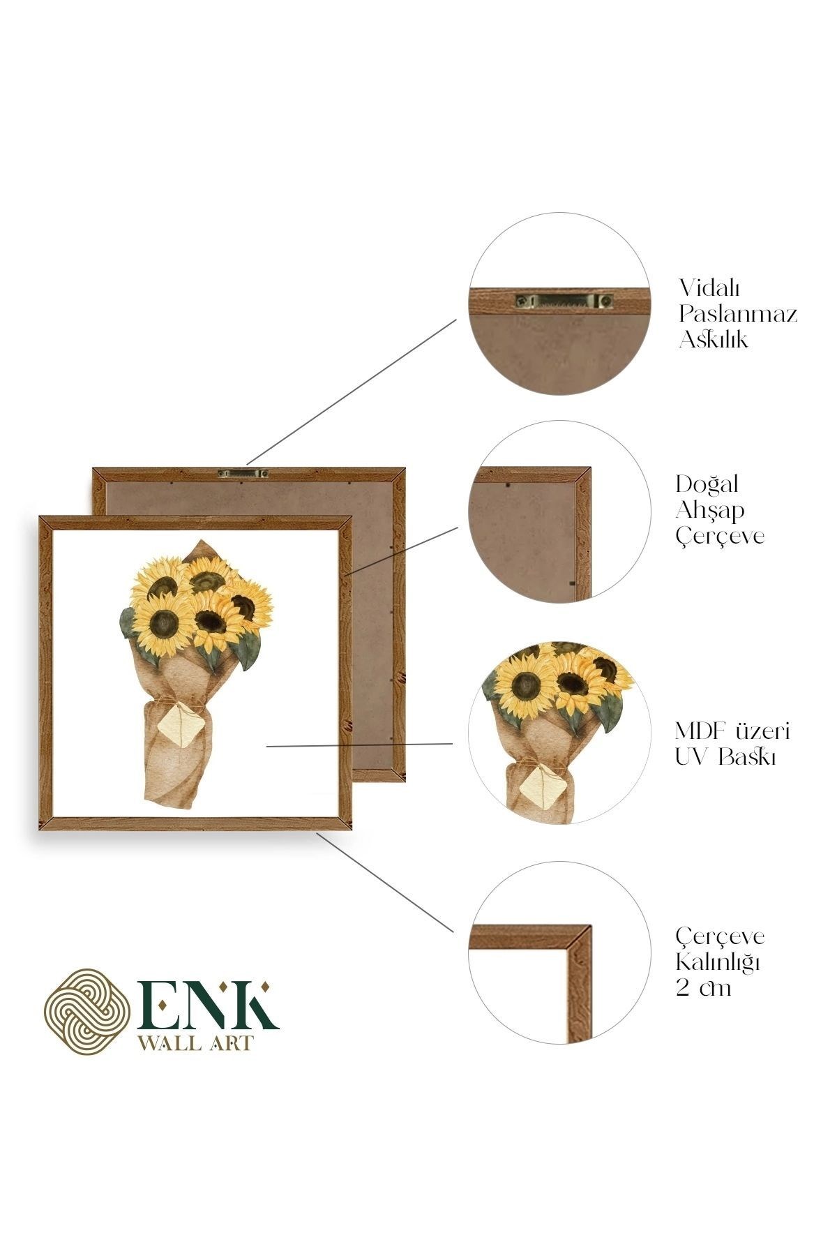 Tablolarımız gerçek ahşap çerçevelidir, çerçeve görünümlü değildir. ; ENK Wall Art Olarak Ahşap Çerçeveli Tablolar Üretiyoruz. ; Tablolarımız tek parça, 3 Parça, 5 Parça ve daha çok kategoride tasarımcılarımız tarafından ev ve ofisleriniz duvarları süslemek için tasarlanmaktadır. ; Ahşap Çerçeveli Duvar Tabloları ile yaşam alanlarınıza yepyeni bir görünüm kazandırın. ; Yıllarca dayanacağından emin olduğumuz sağlam çerçevelere sahip yüksek kaliteli ahşaptan üretilmiştir. ; İster bir köşeyi süslemek isteyin, ister evinizi yenilemek , bu ahşap tablolar herhangi bir yaşam alanına stil ve işlev getirecektir. ; Duvara kolay bir şekilde monte edilir. ; Uzun ömürlü kullanım için sağlam ahşap çerçeveden yapılmış, dayanıklı ve güçlü. ; Duvara monte edilebilir tasarımı, yaşam alanlarında veya yatak odalarında duvara kolayca asılmasını sağlar. ; Pürüzsüz üst yüzeyi temiz kalmayı kolaylaştırır. ; Herhangi bir stile uyacak şekilde çeşitli renklerde gelir. ; Kolay yeniden düzenleme için hafif ve portatif. ; Küçük oturma odaları veya dar alanlar için mükemmel boyut. ; Eve taşınma hediyesi olarak idealdir. ; Herhangi bir evin dekorunu süslemek için harika bir yol. ; Herhangi bir modern veya çağdaş iç tasarıma mükemmel bir katkı. ; Tablo içi 3 mm mdf (ahşap) malzeme üzeri uv baskıdır. ; Renkler canlı ve solma yapmaz. ; Kırılma, bükülme ve çizilmeye karşı dayanıklıdır.;