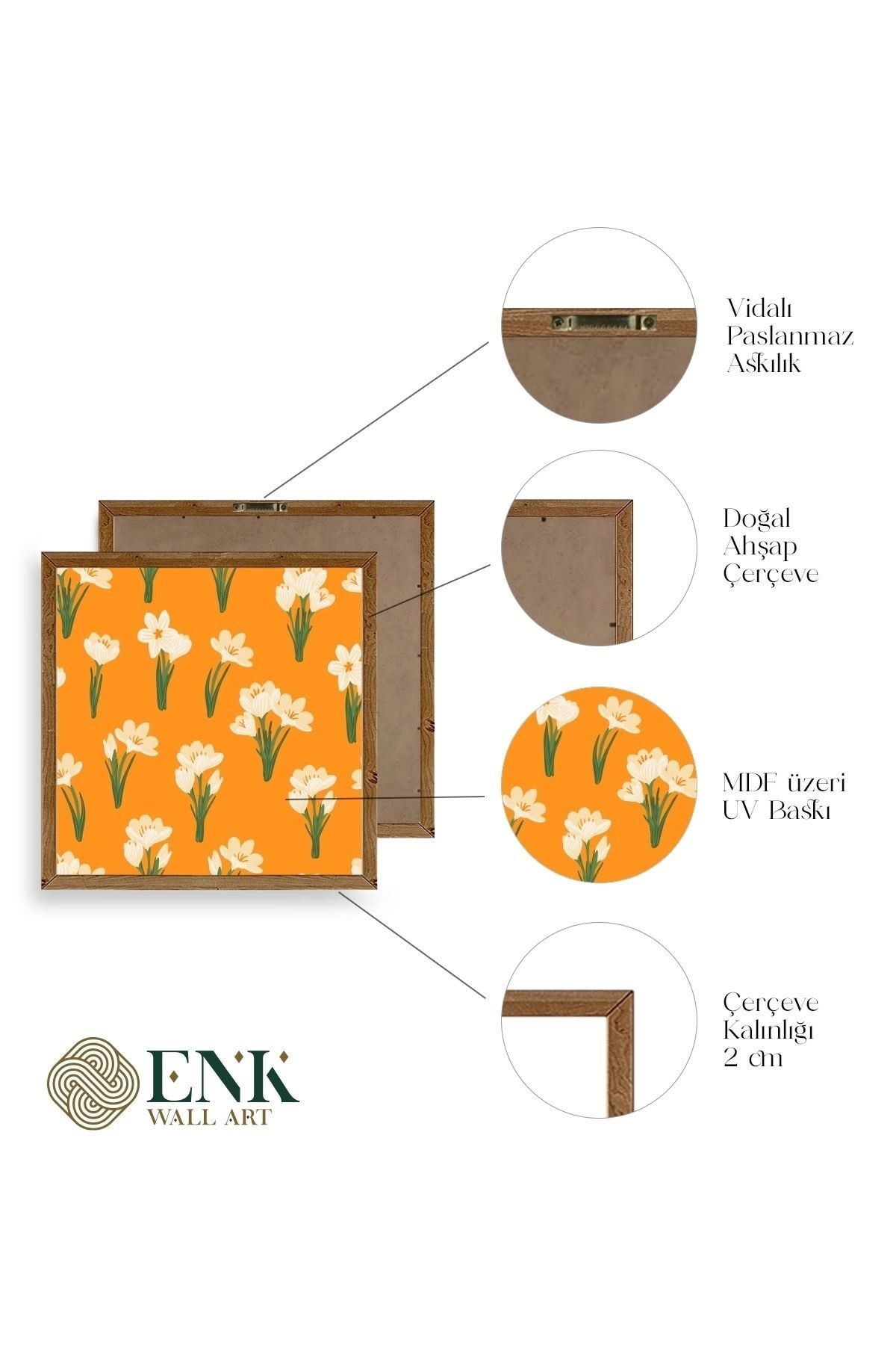 Tablolarımız gerçek ahşap çerçevelidir, çerçeve görünümlü değildir. ; ENK Wall Art Olarak Ahşap Çerçeveli Tablolar Üretiyoruz. ; Tablolarımız tek parça, 3 Parça, 5 Parça ve daha çok kategoride tasarımcılarımız tarafından ev ve ofisleriniz duvarları süslemek için tasarlanmaktadır. ; Ahşap Çerçeveli Duvar Tabloları ile yaşam alanlarınıza yepyeni bir görünüm kazandırın. ; Yıllarca dayanacağından emin olduğumuz sağlam çerçevelere sahip yüksek kaliteli ahşaptan üretilmiştir. ; İster bir köşeyi süslemek isteyin, ister evinizi yenilemek , bu ahşap tablolar herhangi bir yaşam alanına stil ve işlev getirecektir. ; Duvara kolay bir şekilde monte edilir. ; Uzun ömürlü kullanım için sağlam ahşap çerçeveden yapılmış, dayanıklı ve güçlü. ; Duvara monte edilebilir tasarımı, yaşam alanlarında veya yatak odalarında duvara kolayca asılmasını sağlar. ; Pürüzsüz üst yüzeyi temiz kalmayı kolaylaştırır. ; Herhangi bir stile uyacak şekilde çeşitli renklerde gelir. ; Kolay yeniden düzenleme için hafif ve portatif. ; Küçük oturma odaları veya dar alanlar için mükemmel boyut. ; Eve taşınma hediyesi olarak idealdir. ; Herhangi bir evin dekorunu süslemek için harika bir yol. ; Herhangi bir modern veya çağdaş iç tasarıma mükemmel bir katkı. ; Tablo içi 3 mm mdf (ahşap) malzeme üzeri uv baskıdır. ; Renkler canlı ve solma yapmaz. ; Kırılma, bükülme ve çizilmeye karşı dayanıklıdır.;
