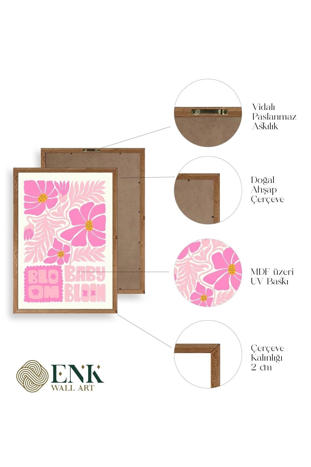 Tablolarımız gerçek ahşap çerçevelidir, çerçeve görünümlü değildir. ; ENK Wall Art Olarak Ahşap Çerçeveli Tablolar Üretiyoruz. ; Tablolarımız tek parça, 3 Parça, 5 Parça ve daha çok kategoride tasarımcılarımız tarafından ev ve ofisleriniz duvarları süslemek için tasarlanmaktadır. ; Ahşap Çerçeveli Duvar Tabloları ile yaşam alanlarınıza yepyeni bir görünüm kazandırın. ; Yıllarca dayanacağından emin olduğumuz sağlam çerçevelere sahip yüksek kaliteli ahşaptan üretilmiştir. ; İster bir köşeyi süslemek isteyin, ister evinizi yenilemek , bu ahşap tablolar herhangi bir yaşam alanına stil ve işlev getirecektir. ; Duvara kolay bir şekilde monte edilir. ; Uzun ömürlü kullanım için sağlam ahşap çerçeveden yapılmış, dayanıklı ve güçlü. ; Duvara monte edilebilir tasarımı, yaşam alanlarında veya yatak odalarında duvara kolayca asılmasını sağlar. ; Pürüzsüz üst yüzeyi temiz kalmayı kolaylaştırır. ; Herhangi bir stile uyacak şekilde çeşitli renklerde gelir. ; Kolay yeniden düzenleme için hafif ve portatif. ; Küçük oturma odaları veya dar alanlar için mükemmel boyut. ; Eve taşınma hediyesi olarak idealdir. ; Herhangi bir evin dekorunu süslemek için harika bir yol. ; Herhangi bir modern veya çağdaş iç tasarıma mükemmel bir katkı. ; Tablo içi 3 mm mdf (ahşap) malzeme üzeri uv baskıdır. ; Renkler canlı ve solma yapmaz. ; Kırılma, bükülme ve çizilmeye karşı dayanıklıdır.;