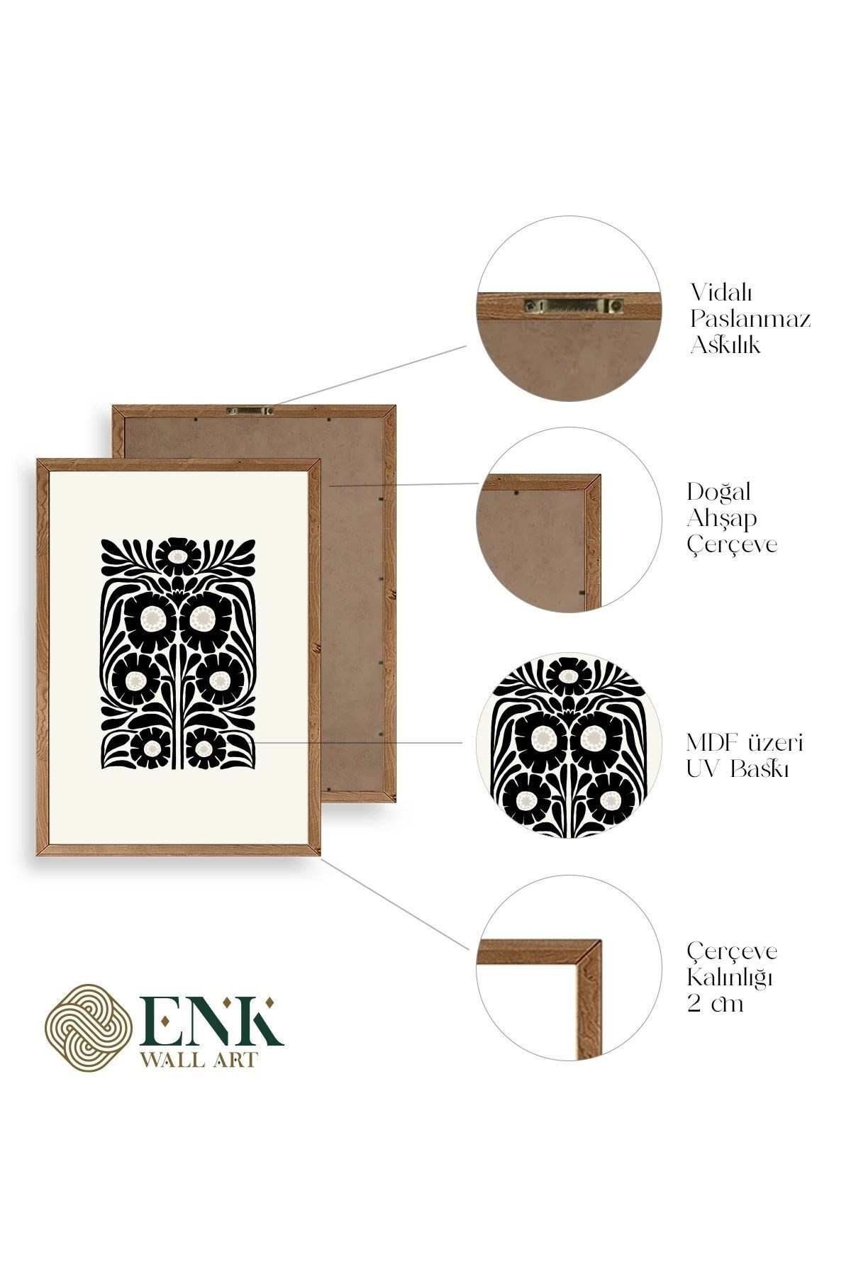 Tablolarımız gerçek ahşap çerçevelidir, çerçeve görünümlü değildir. ; ENK Wall Art Olarak Ahşap Çerçeveli Tablolar Üretiyoruz. ; Tablolarımız tek parça, 3 Parça, 5 Parça ve daha çok kategoride tasarımcılarımız tarafından ev ve ofisleriniz duvarları süslemek için tasarlanmaktadır. ; Ahşap Çerçeveli Duvar Tabloları ile yaşam alanlarınıza yepyeni bir görünüm kazandırın. ; Yıllarca dayanacağından emin olduğumuz sağlam çerçevelere sahip yüksek kaliteli ahşaptan üretilmiştir. ; İster bir köşeyi süslemek isteyin, ister evinizi yenilemek , bu ahşap tablolar herhangi bir yaşam alanına stil ve işlev getirecektir. ; Duvara kolay bir şekilde monte edilir. ; Uzun ömürlü kullanım için sağlam ahşap çerçeveden yapılmış, dayanıklı ve güçlü. ; Duvara monte edilebilir tasarımı, yaşam alanlarında veya yatak odalarında duvara kolayca asılmasını sağlar. ; Pürüzsüz üst yüzeyi temiz kalmayı kolaylaştırır. ; Herhangi bir stile uyacak şekilde çeşitli renklerde gelir. ; Kolay yeniden düzenleme için hafif ve portatif. ; Küçük oturma odaları veya dar alanlar için mükemmel boyut. ; Eve taşınma hediyesi olarak idealdir. ; Herhangi bir evin dekorunu süslemek için harika bir yol. ; Herhangi bir modern veya çağdaş iç tasarıma mükemmel bir katkı. ; Tablo içi 3 mm mdf (ahşap) malzeme üzeri uv baskıdır. ; Renkler canlı ve solma yapmaz. ; Kırılma, bükülme ve çizilmeye karşı dayanıklıdır.;