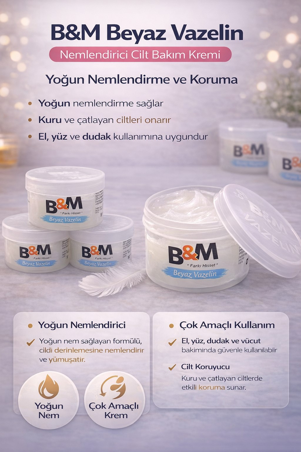 B&M Beyaz Vazelin Nemlendirici Cilt Bakım Kremi Çok Amaçlı Yoğun Nemlendirici 2 Adet