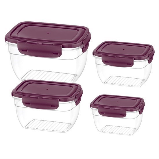 Cook&Lock Renkli Kapak Dikdörtgen Derin Saklama Kabı 4Lü Set-12206