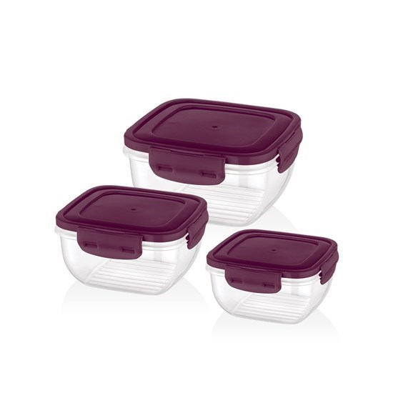 Kare Saklama Kabı 3'Lü Set (650 Ml-1300 Ml-1900 Ml)