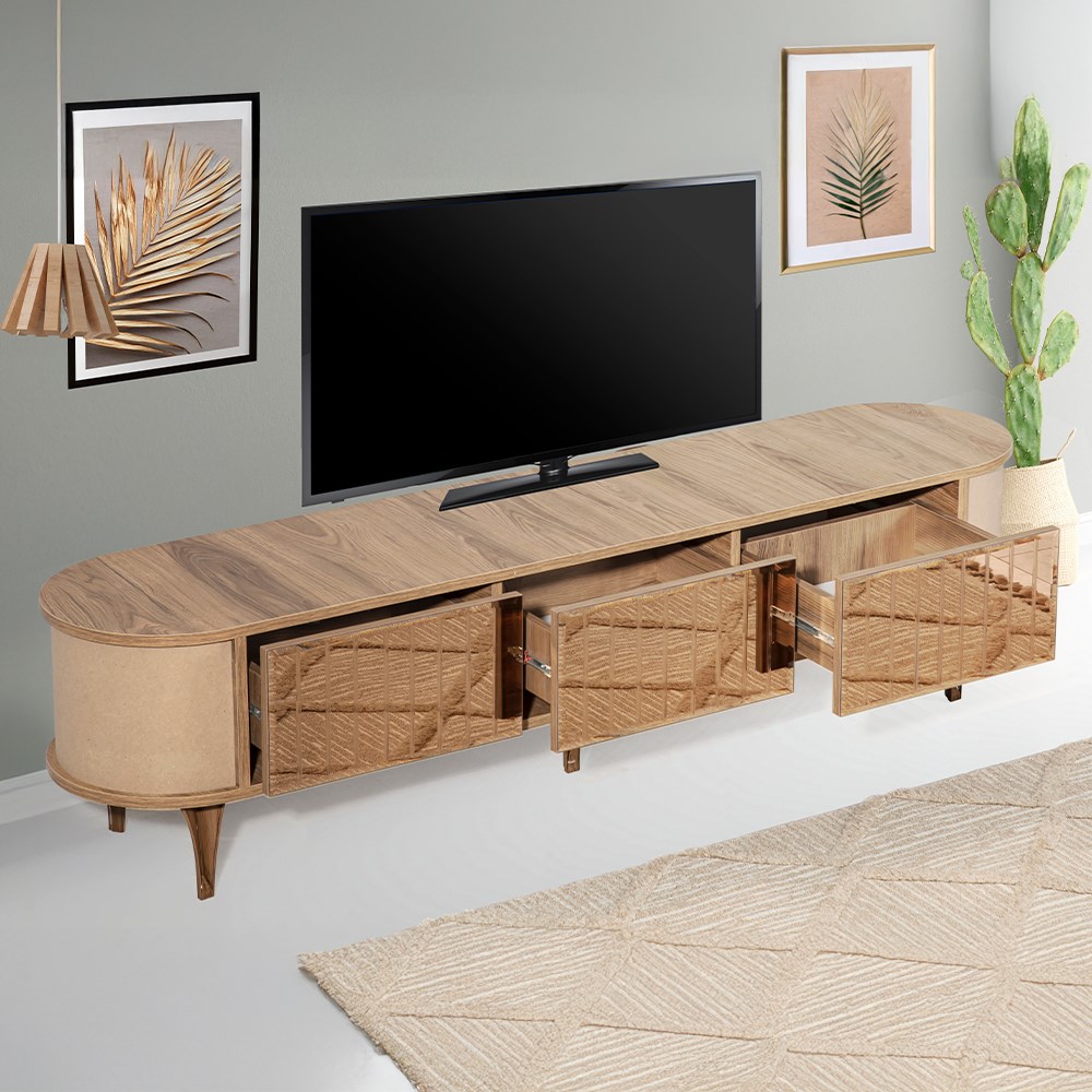 CVC WOOD FireGlow TV Ünitesi - 180 cm - 6 Renk Seçeneği - Modern Lüks Tasarım yalın ve şık tasarımı ile dekorasyonunuza zarafet katar. 180 cm genişliği sayesinde farklı ekran boyutlarına uyum sağlar. Fonksiyonel yapısı, raf düzeni ve kaliteli malzeme kullanımı ile hem estetik hem de kullanışlı bir deneyim sunar.